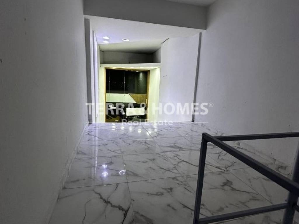 Ground-floor retail shop of 40 sq.m. for rent, in a central location on Delfon Street. It consists of one open-plan space, one WC, and an 11 sq.m. mezzanine. There is pre-installation for air conditioning, double-glazed windows, and a large front courtyard area that can be leased from the Municipality. Public parking is available in front of the shop, with views of both a park and the urban landscape.