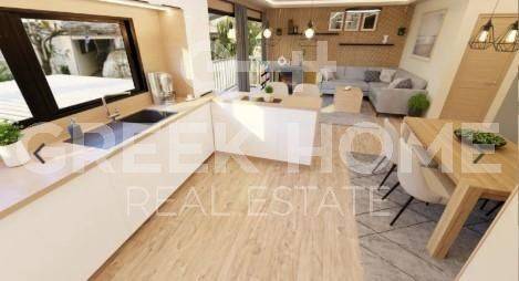 Agios Pavlos, Centre - Apartment 80sqm plot 145sqm, fully furnished, bedrooms 2, ground floor, fully renovated, year built 1976, energy class B+, living room, hall, kitchen, bathroom, heating type: autonomous (natural gas), air condition, quiet, dual aspect apartment, luminous, frontage, storage space, fireplace, balconies, garden, garden 65sqm, aluminum frames, double glazed windows, door screen, ceramic tiles floors, night electricity discount rate, secure door, alarm, surveillance cameras, luxurious, pets allowed, eastern orientation, investment property (return 5.64%).