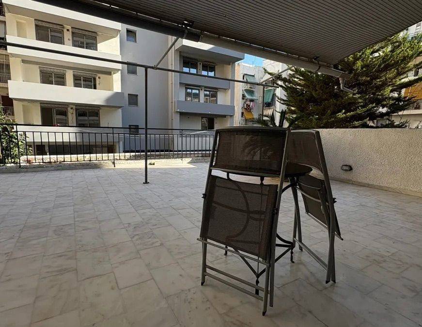 διαμπερές διαμέρισμα 93τ.μ., 1ος όροφος, στην περιοχή Χρυσάκη Καλλιθέας. Διαθέτει 2 μεγάλα υπνοδωμάτια, άνετο σαλόνι-τραπεζαρία 30τ.μ., κουζίνα με έξοδο σε μπαλκόνι, μπάνιο και WC. Μεγάλες βεράντες συνολικής επιφάνειας 80τ.μ. με τέντες και ανοιχτή θέα. Δάπεδα λευκό μάρμαρο, εντοιχισμένες ντουλάπες και κουζίνα γρανίτη, πόρτα ασφαλείας, διπλά τζάμια, συναγερμός, οπτική ίνα, τριφασικό νυχτερινό ρεύμα. Αυτόνομη θέρμανση φυσικού αερίου. Πολύ χαμηλά κοινόχρηστα. Κοντά σε ΜΜΜ, αγορά, Νιάρχο και παραλία. Δυνατότητα αγοράς υπόγειου parking.