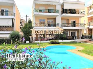 Ground floor apartment, in a wonderful complex with a garden and a shared swimming pool It is ideal for tourist or permanent residence and consists of a bathroom, 2 bedrooms, living room, kitchen, and a large terrace with direct access to the garden and pool. It has a security door and windows, fully furnished, individual heating, radiators and a parking space The apartment is located 800 m from a wonderful beach, 100m from the village market with cafe super markets, shops and taverns, 82 km from Thessaloniki Airport and 9 km from the Hospital. For more information just call +30 6977246200 Sousouras Vasilis Halkidiki Realtor