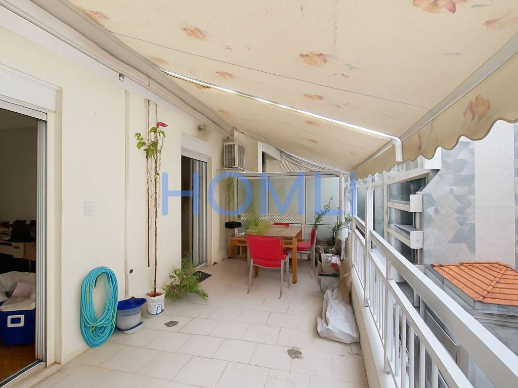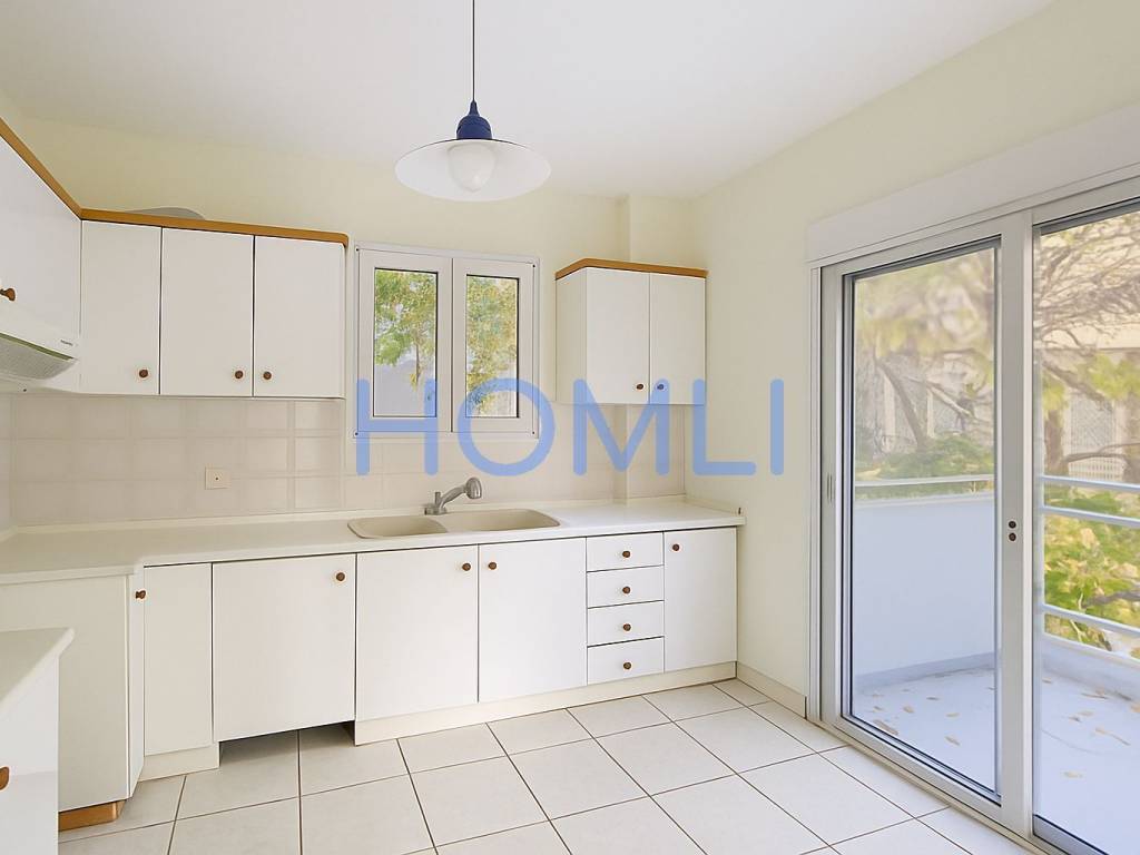 Apartment with parking space in an excellent location in Agia Triada, Thessaloniki. The 105 sq m apartment is located on the 3rd floor, with an excellent layout and bright, airy spaces. It consists of a spacious living room, two bedrooms, a separate kitchen with access to its own balcony, a bathroom and a large terrace that gives access to this living room and one room. In addition, it has an individual natural gas installation, a storage room in the basement and a parking space in the attic of the apartment building. It is located in a prime location just 700 meters from the beach and with direct access to commercial stores and businesses of health interest. HOMLI, property code 23507, contact us at 2104402950.