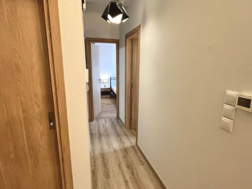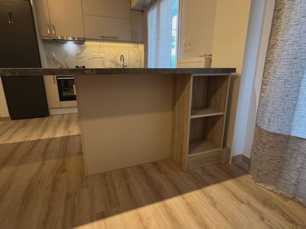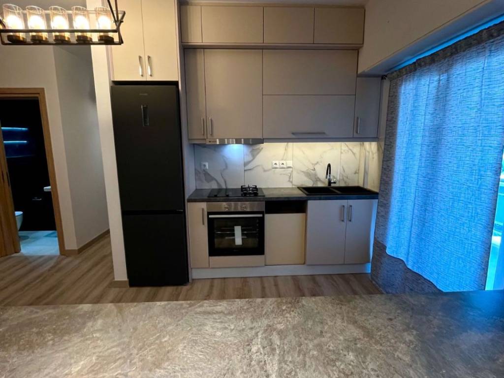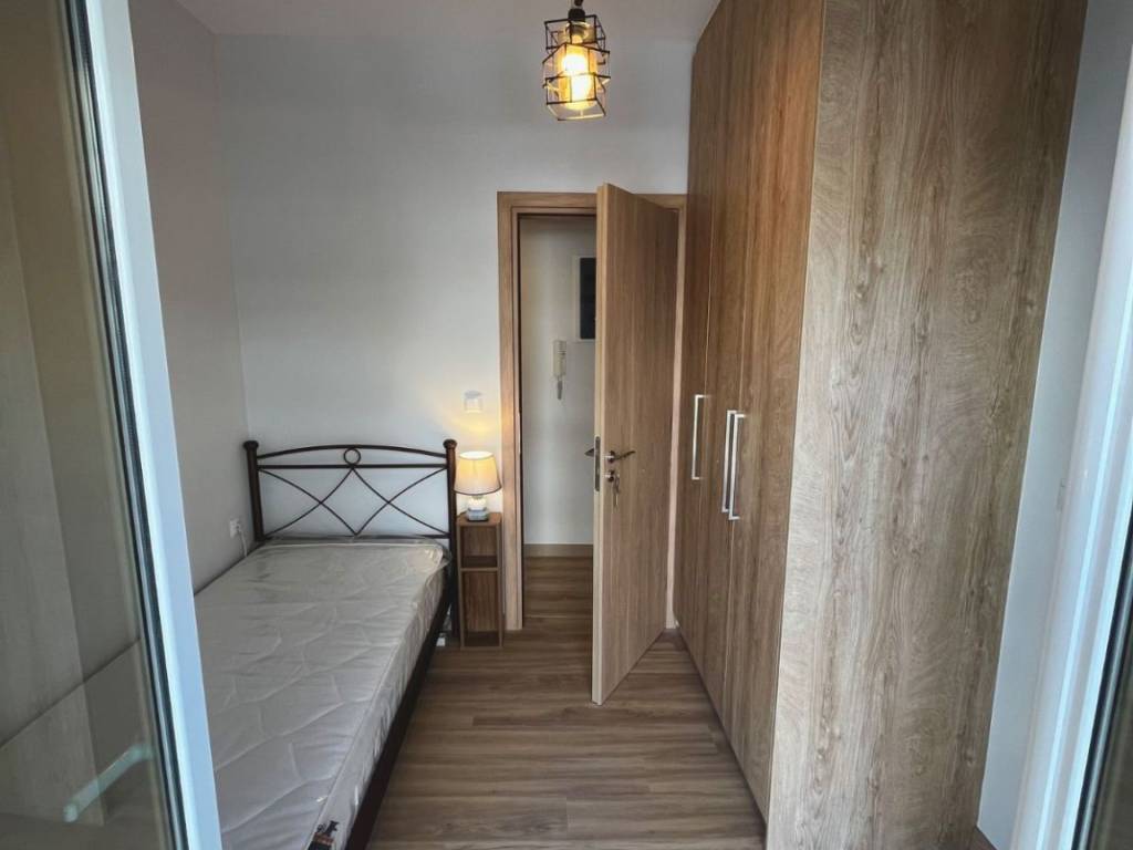 78 sqm with 2 bedrooms ,bathroom and WC The apartment is situated on the second floor, the building has a new elevator. It is fully renovated, situated in really good region ,with easy parking ,big balcony , away from other buildings , airy and sunny. You can find really close supermarkets , market ,bus stops and it’s close to the sea. It has two bedrooms with wardrobes. A bathroom with wall-hung toilet ,shower cabin , a washing machine,mirror-cabinet and a cabinet. A WC with wall-hung toilet,mirror and cabinet. Kitchen-Living room ergonomically designed with a lot of storage space. Couch that transforms to a bed and a table with four chairs. The kitchen island also has a lot of storage space and can be used as a dining table . It has a big loft and has AUTONOMOUS natural gas heating. The renovation finished at 2026, new technology materials were used such as: 1. Electrical wiring and electrical board 2.Plumbing 3. Energy-efficient Aluminum window frames ,window screens and electrical blinds 4.Vinyl flooring 5.Bathroom with cabin 6.Shower with column 7.Washing machine 8.W.C. 9.Autonomous natural gas heating 10.Kitchen with an island (island can easily be used by 6 persons) 11.Domino electric burner 12.Domino gas burner 13. Refrigerator-freezer 14.Electric stove 15.Cooker hood 16.TV 17.3-door closet with lights 18.4-door closet with lights 19.Solar water heater Furniture 1.Double bed 2.Single bed 3.3 nightstands 4.3 nightstand lamps 5.Living room table with four chairs 6. 3seater couch that transforms to a bed 7. Coffee table 8.TV stand 9.3 little tables 10.4 seats for the kitchen island 11. Floor living room lamp