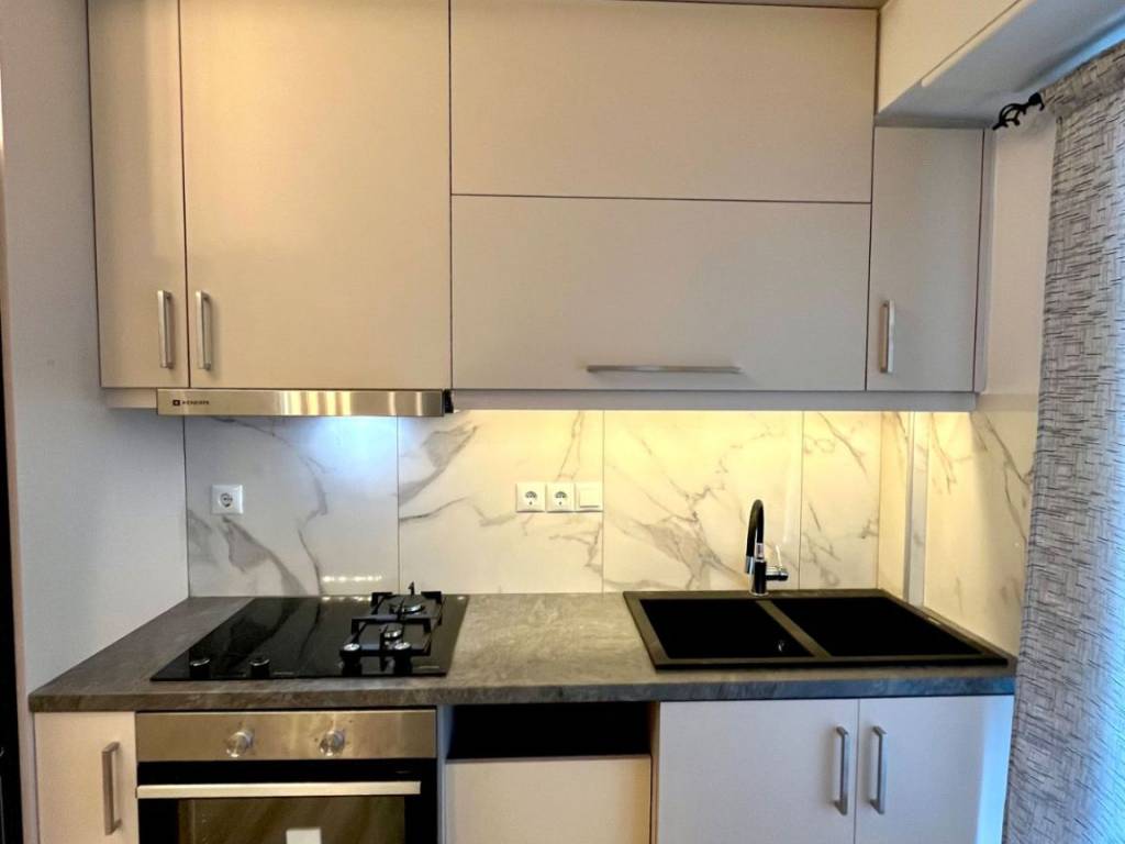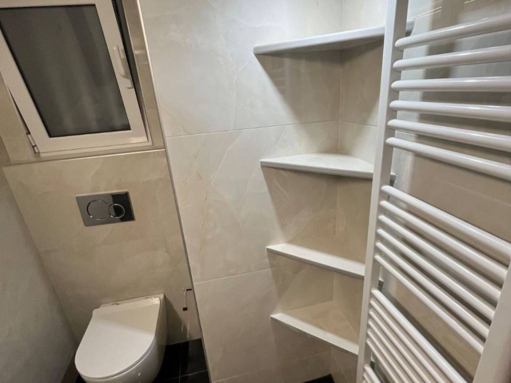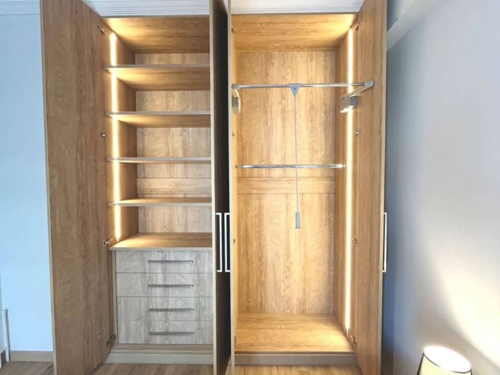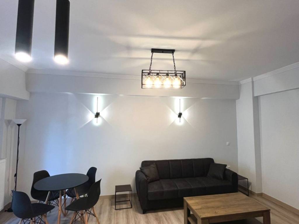 78 sqm with 2 bedrooms ,bathroom and WC The apartment is situated on the second floor, the building has a new elevator. It is fully renovated, situated in really good region ,with easy parking ,big balcony , away from other buildings , airy and sunny. You can find really close supermarkets , market ,bus stops and it’s close to the sea. It has two bedrooms with wardrobes. A bathroom with wall-hung toilet ,shower cabin , a washing machine,mirror-cabinet and a cabinet. A WC with wall-hung toilet,mirror and cabinet. Kitchen-Living room ergonomically designed with a lot of storage space. Couch that transforms to a bed and a table with four chairs. The kitchen island also has a lot of storage space and can be used as a dining table . It has a big loft and has AUTONOMOUS natural gas heating. The renovation finished at 2026, new technology materials were used such as: 1. Electrical wiring and electrical board 2.Plumbing 3. Energy-efficient Aluminum window frames ,window screens and electrical blinds 4.Vinyl flooring 5.Bathroom with cabin 6.Shower with column 7.Washing machine 8.W.C. 9.Autonomous natural gas heating 10.Kitchen with an island (island can easily be used by 6 persons) 11.Domino electric burner 12.Domino gas burner 13. Refrigerator-freezer 14.Electric stove 15.Cooker hood 16.TV 17.3-door closet with lights 18.4-door closet with lights 19.Solar water heater Furniture 1.Double bed 2.Single bed 3.3 nightstands 4.3 nightstand lamps 5.Living room table with four chairs 6. 3seater couch that transforms to a bed 7. Coffee table 8.TV stand 9.3 little tables 10.4 seats for the kitchen island 11. Floor living room lamp