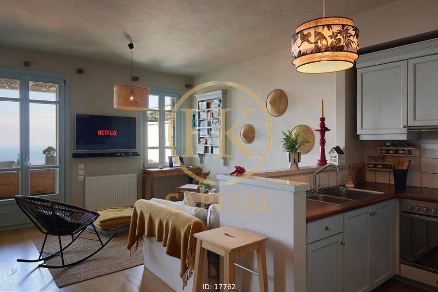 Kea (Tzia), Ioulida - Maisonette 122sqm fully furnished, bedrooms 2, levels 3, ground floor - 1st, excellent condition, year built 2004, energy class A+, living room, kitchen, 2 bathrooms, wc, heating type: autonomous (fan coil), air condition, parking open space, quiet, dual aspect apartment, luminous, unobstructed view, frontage, fireplace, large balconies, built in appliances, aluminum frames, double glazed windows, door screen, wood & tile floors, night electricity discount rate, secure door, luxurious, internal staircase, pets allowed, within city plan, residential zone, north-western orientation, access from asphalt, investment property, special offer, commercial use.