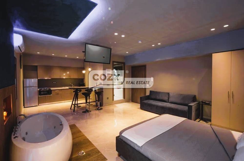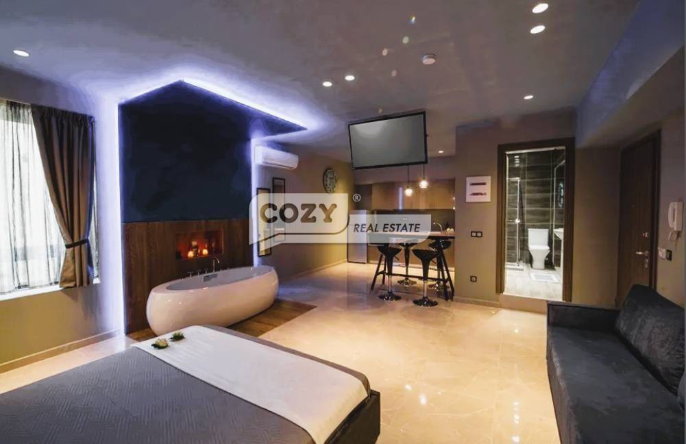 A newly built, fully renovated luxury apartment of 50 sq.m. is available for rent on the 4th floor of a building with elevator. It features autonomous electric heating.