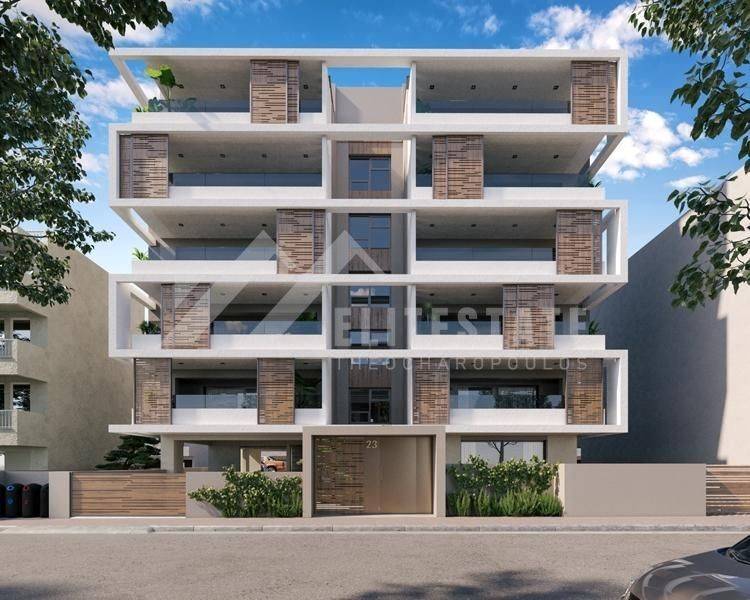 Holargos, Faneromeni - Apartment 148sqm bedrooms 4, master bedroom, levels 1, 4th, under construction, year built 2024, energy class A+, living room, hall, kitchen, 2 bathrooms, wc, heating type: individual unit (natural gas), parking covered, quiet, dual aspect apartment, luminous, frontage, painted, electric roller shutters, storage space, solar heater, external thermal insulation, fireplace, balconies, large balconies, elevator, thermal shut-off frames, double glazed windows, secure door, video doorbell, luxurious, under floor heating, pets allowed, residential zone, access from asphalt, close to sports facilities (up to 500m), close to metro/train (up to 1000m).