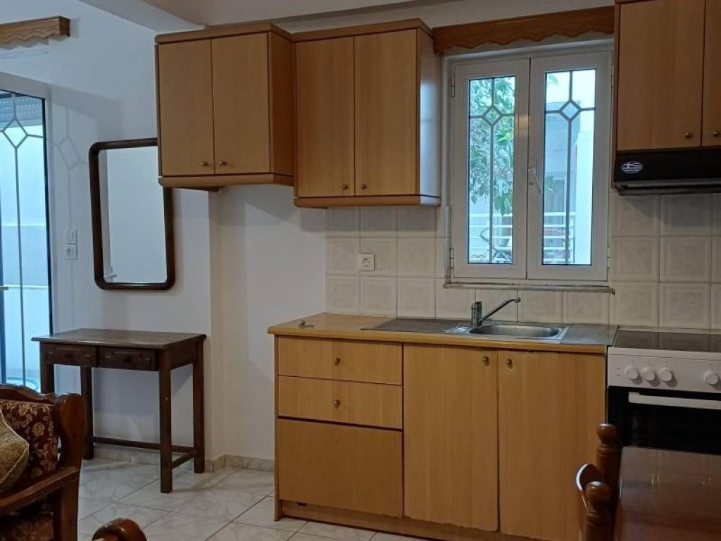 A 27 sq.m. open-plan studio apartment is available for rent, semi-basement level, in Perivolia, Rethymno.