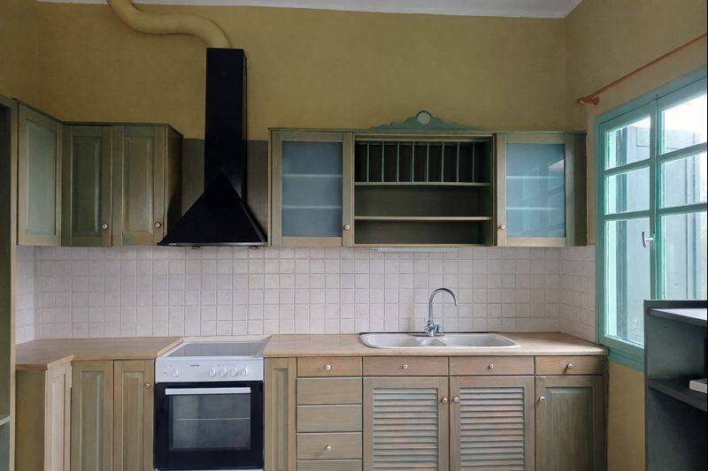 Detached House for Sale in Pamfila A habitable detached house of 150 sq.m. is for sale, situated on a 300 sq.m. plot in the area of Pamfila. The property is developed on two levels of 75 sq.m. each, offering flexibility and multiple usage possibilities. First Floor (75 sq.m.) The first floor consists of a kitchen, bathroom, hallway, and two bedrooms. It is fully functional, bright, and features a pleasant veranda. The apartment is currently rented, providing immediate rental income to the buyer. Ground Floor (75 sq.m.) The ground floor is an open-plan space, currently used as a storage area, which can be easily converted into an independent apartment, similar in layout to the upper floor. Outdoor Area The property includes a large garden, ideal for family use, relaxation, or further development. Property Features Central heating with oil Window frames partly aluminum and partly wooden Good overall condition Suitable for owner-occupation or investment purposes An excellent opportunity in a quiet area, with the potential to create two independent residential units. For more information or to arrange a viewing, please contact us +306936995509