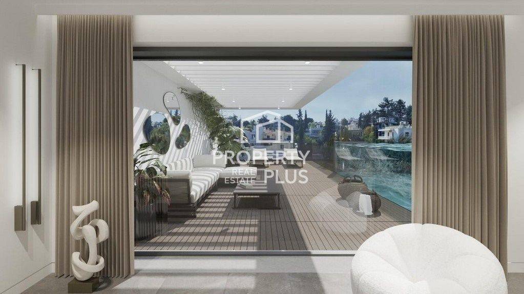 In an excellent location in Filothei, a 191 sq.m. newly built penthouse maisonette on the 2nd and 3rd floors with a roof garden and pool, in a building with 3 residences, on a 784.73 sq.m. plot. The design is of minimal aesthetics and features all modern specifications. The 2nd floor is 130 sq.m. and consists of large reception areas with access to spacious verandas, a kitchen, and 2 master bedrooms with en-suite bathrooms. The 3rd floor/attic is 61 sq.m. and consists of a small living room, WC, and 1 bedroom with a bathroom. The residence has large openings and access to a beautifully landscaped 80 sq.m. roof garden with a pool, an outdoor seating area with a pergola, a deck, and green spaces. It also includes a 30.84 sq.m. service studio in the basement, a 17 sq.m. storage room and 3 underground parking spaces. Property specifications: Building thermal insulation, Aloumil aluminum thermal break frames with energy glass, electric shutters, underfloor heating with a natural gas boiler, VRV air conditioning, solar collectors with boiler, oak floors, Smart House with KNX system.