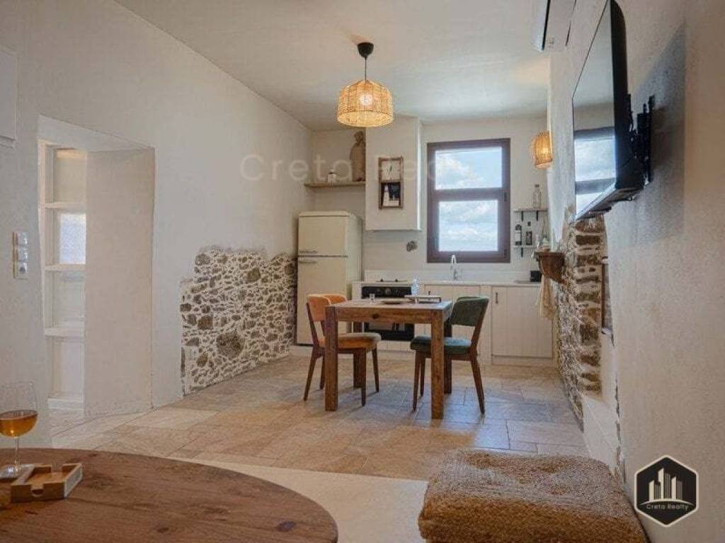 Property Code: 1-137 - House FOR SALE in Sitia Mirsini for € 240.000 . This 80.00 sq. m. furnished House is on the Ground floor and features 2 Bedrooms, Livingroom, Kitchen, bathroom and a WC. The property also boasts Heating system: Individual - Petrol, stone floor, unobstructed view, Window frames: Aluminium, Security door, garden, A/C, balconies: 45 sqm. The building was constructed in 2023 and renovated in 2023 Plot area: 320 s.q. . Building Energy Rating: A Distance from sea 200 meters,
