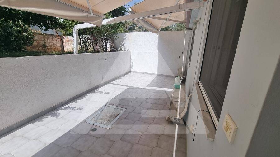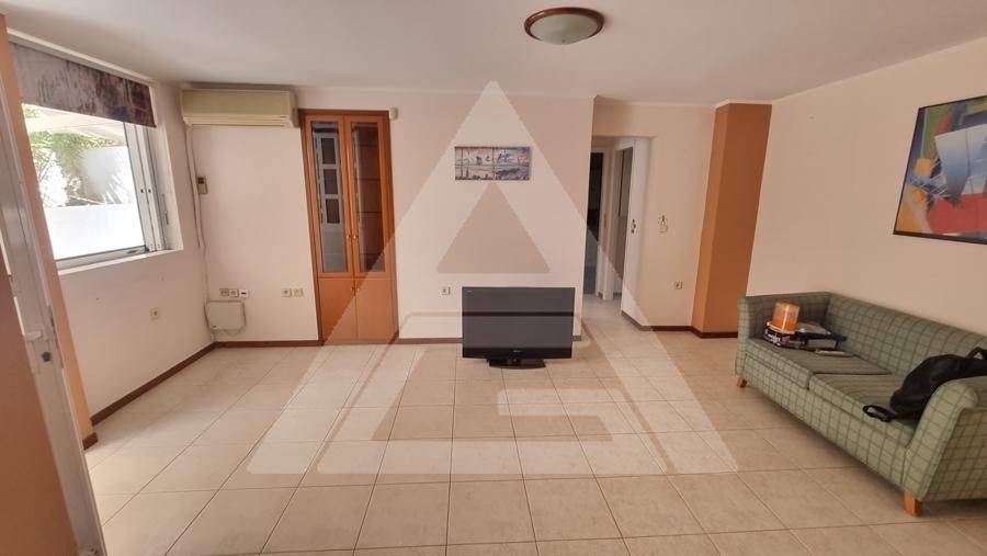 Alimos - Apartment 61sqm electrical appliances furnished, bedroom, levels 1, basement, very good condition, year built 1990, renovation year 2021, energy class F, living room, kitchen, bathroom, heating type: autonomous (air condition), quiet, luminous, frontage, painted, storage space, balconies, large balconies, tents, garden, aluminum frames, double glazed windows, door screen, ceramic tiles floors, without common charges, secure door, pets allowed, residential zone, access from asphalt.