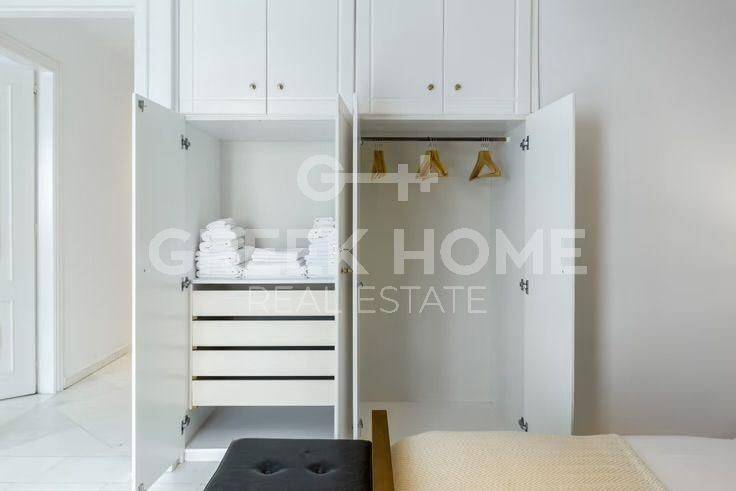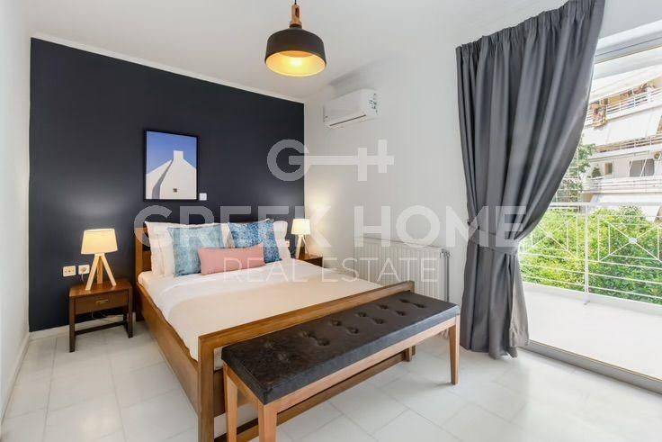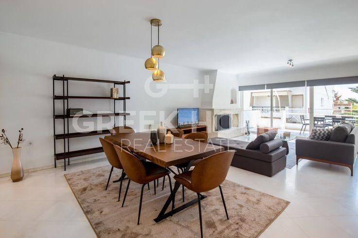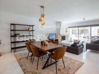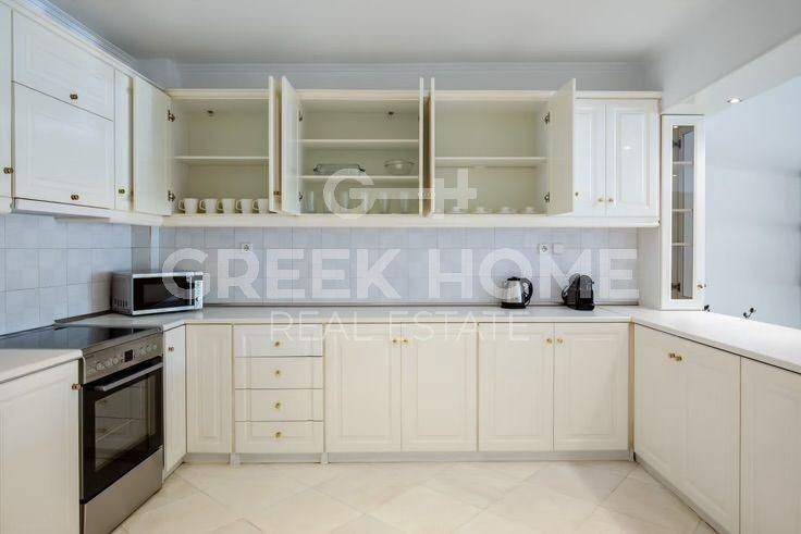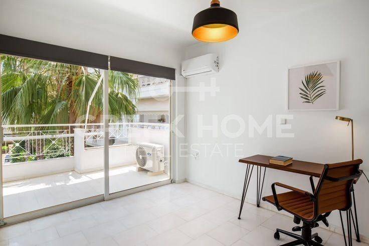 Glyfada - Maisonette 130sqm bedrooms 2, master bedroom, levels 3, ground floor - 1st - 2nd, energy class D, living room, kitchen, bathroom, wc, heating type: autonomous (natural gas), parking covered,2, storage space, fireplace, elevator, garden, double glazed windows, alarm, surveillance cameras, private pool.
