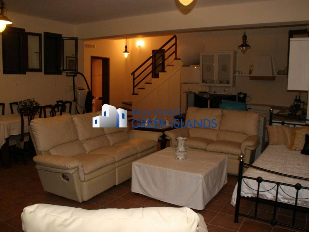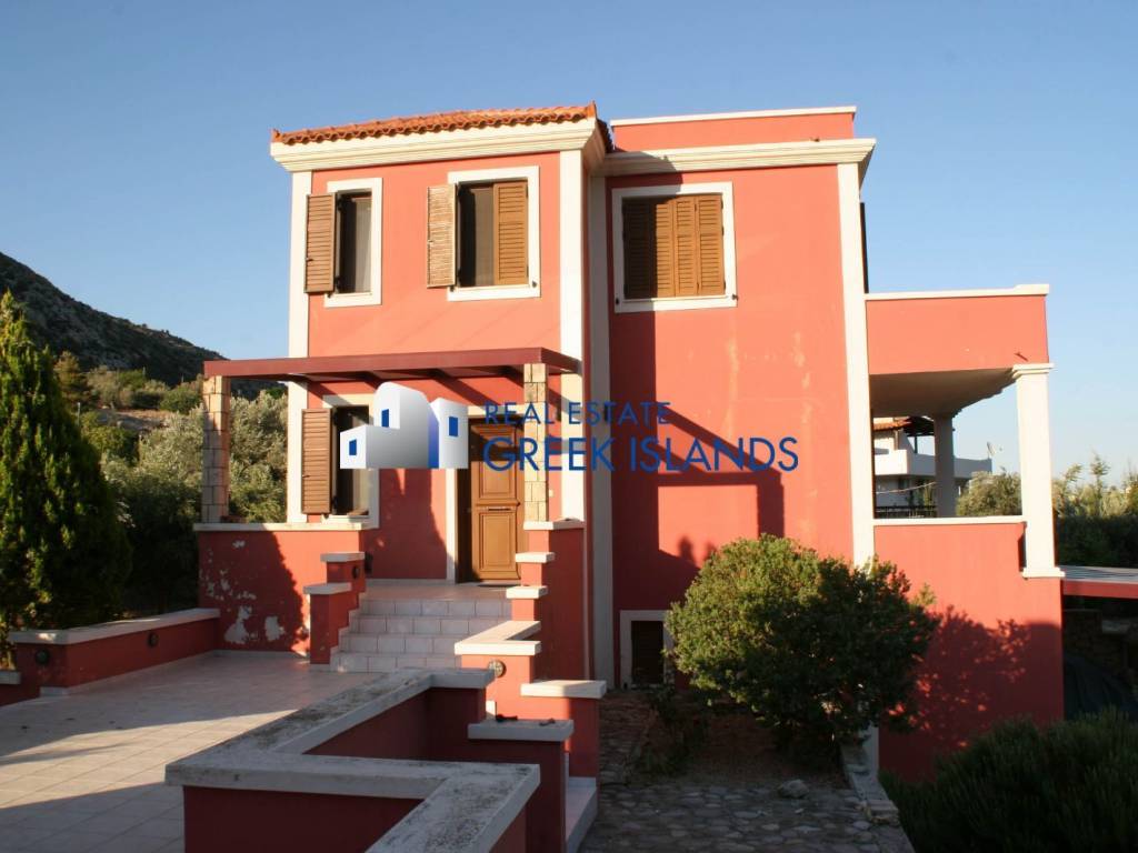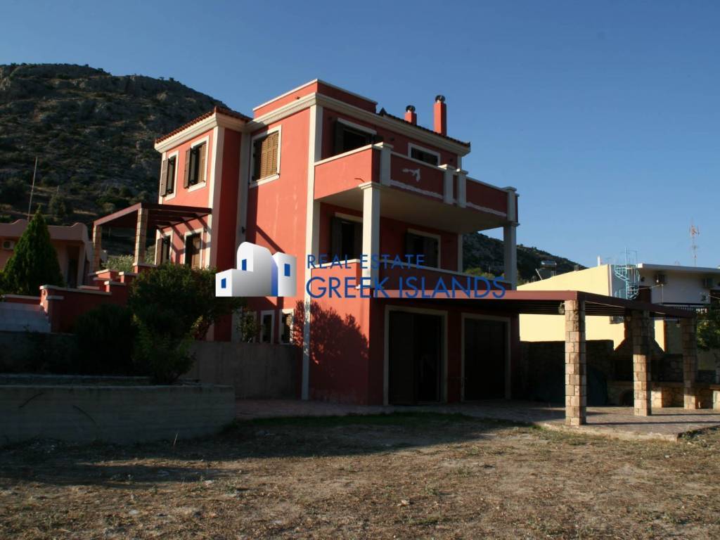 Detached house 120sq.m. and guest house 37sq.m. in Greece, Aegina, subarea Alones for sale. The house is in a quiet area on a 2200sq.m. plot. It has 3 levels. The basement has 2 bedrooms, 1 living room, 1 bathroom and a kitchen. There is also a fireplace. The ground floor has 3 bedrooms and a bathroom and the first floor has a living room, W/C and a kitchen. Next to the house there is a 37sq.m. guest house and it has 2 bedrooms and a bathroom. There is a fireplace and petrol for heating. There are excellent quality aluminum frames. There is an A/C in each room. There is an outdoor parking space for the car. There is mountain view. It was constructed in 2005. 450 000 EURO CODE. 270350 info@realestate-greekislands.com www.realestate-greekislands.com TEL. 00306936720850