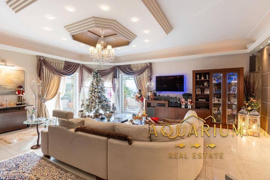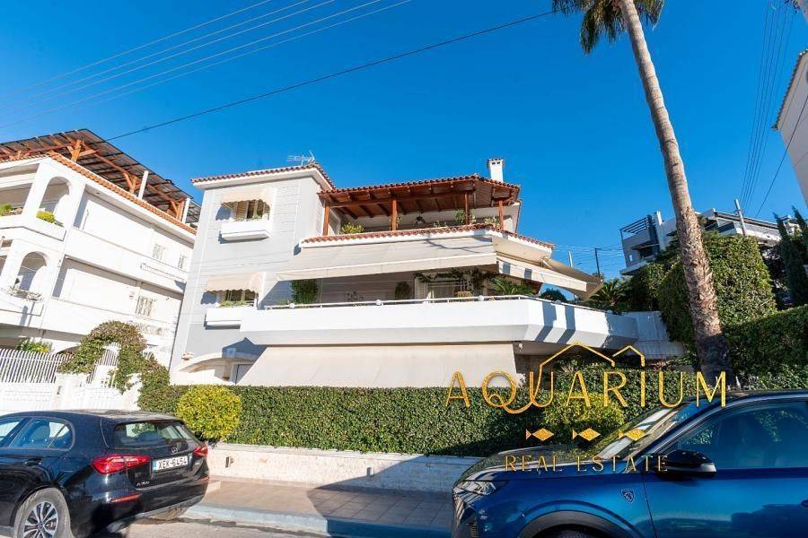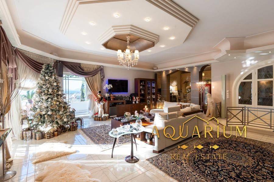 GLYFADA - Eksoni, Newly built detached house of 465 sq.m. ground floor and 1st floor, consisting of 2 independent residences with unlimited sea views and a garden all around, 1) The First property is a Ground floor 175 sq.m. : It consists of an open plan living room - dining room - kitchen, 2 master bedrooms with their own bathroom. It has a fireplace, electric awnings, all windows are electric, built-in electrical appliances (dishwasher, washing machine, stove, oven, extractor hood), hidden LED lighting, sound system installation (stereo & home cinema), 4 storage rooms, many wardrobes. Renovated in 2018. 2) The Second is a Maisonette of 265 sq.m. Ground & 1st floor: Ground floor: Open plan living room - dining room - sitting room - kitchen. 1st floor: 4 bedrooms in total (1 master), the master bedroom with fireplace and its own bathroom with jacuzzi, three additional bedrooms with a shared bathroom. It has hidden LED lighting with control, sound system installation (stereo & home cinema), fireplace, electric windows, mezzanines, many closets, many closets. The entire property has the possibility of consolidation and the elevator has an installation for the entire property. It is located in a VIP area with 24-hour security by state and private police.