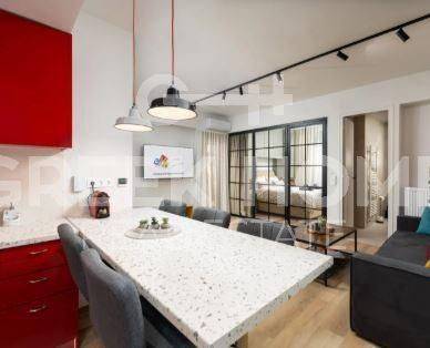 Goudi - Apartment 54sqm fully furnished, bedrooms 2, 3rd, fully renovated, year built 1972, renovation year 2024, energy class D, living room, hall, kitchen, bathroom, heating type: central (oil), air condition, quiet, dual aspect apartment, luminous, painted, balconies, elevator, aluminum frames, double glazed windows, laminate floors, secure door, pets allowed, investment property, commercial use.