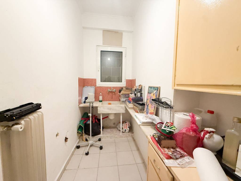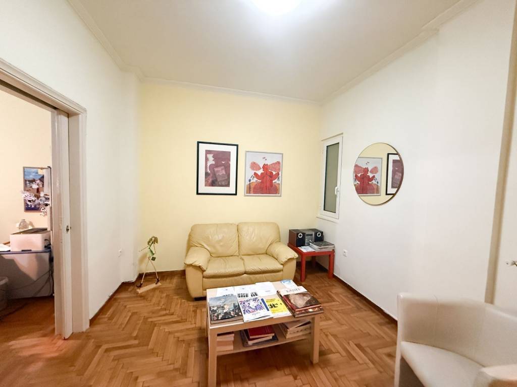 This is a 42sqm apartment on the raised ground floor of a building built in 1965. It consists of a living room, separate kitchen, bedroom and bathroom. It has wooden floors, oil central heating, air conditioning. It is located in an excellent location next to Agios Georgios Square. It is rented as a medical office until December 2028.