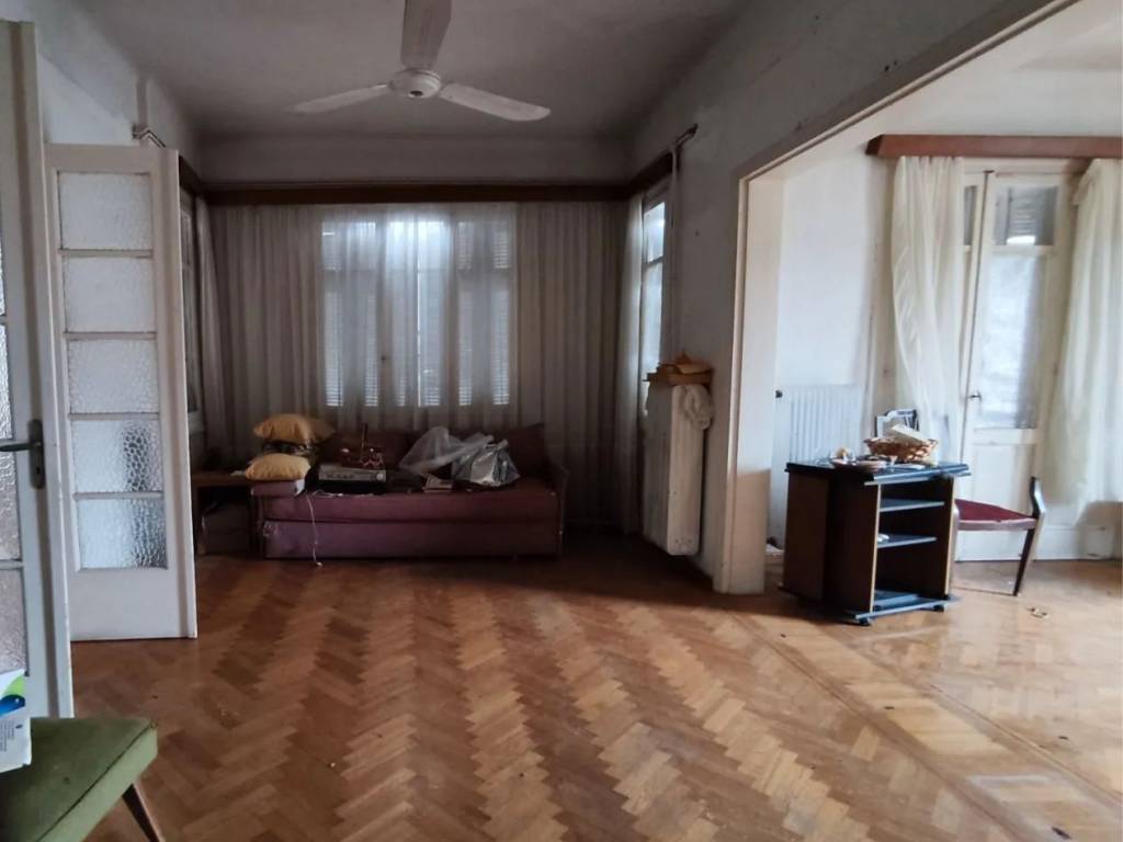 Apartment for Sale – 145 sq.m. in a 1937 Building Top-floor apartment on the 2nd and last floor of a two-storey building, corner and bright, with views of Ardittos Hill. It features a functional layout and consists of a spacious entrance hall, three reception areas, two comfortable bedrooms, a separate kitchen, bathroom, and a service room / storage space. The property offers a balcony, large openings, oak wooden floors in the main areas, and mosaic flooring. Individual natural gas heating is installed. The apartment requires full renovation, offering the opportunity to be redesigned according to the needs and taste of the new owner. No elevator. Located in an excellent and quiet area, just behind the Panathenaic Stadium (Kallimarmaro), in a highly sought-after part of central Athens. The area provides easy access to public transport, shops, cafés, and services, while schools and sports facilities are within close proximity.