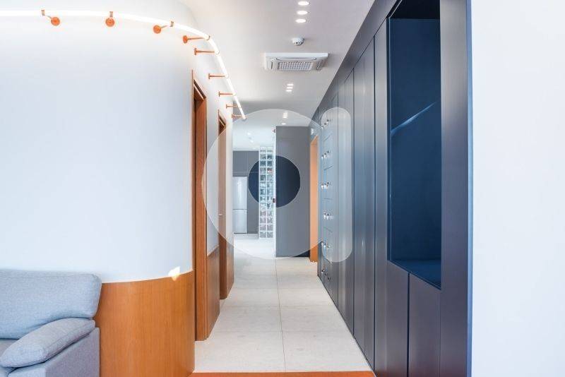 Ο χώρος είναι ιδιαίτερα φωτεινός, με ανοίγματα τόσο στην πρόσοψη προς την Πανεπιστημίου όσο και προς τους ακάλυπτους χώρους. Ξεχωρίζει η μεγάλη βεράντα 30 τ.μ. με ανεμπόδιστη πανοραμική θέα, από ΝΑ προς τον Υμηττό έως και ΒΔ.Διαθέτει πλήρη και σύγχρονο εξοπλισμό:Υποδομή οπτικής ίνας, δομημένη καλωδίωση CAT6A και rack 19’’Κλιματισμό LG με κασέτες σε όλους τους χώρους και κεντρικό έλεγχοΑυτοματισμούς KNX για φωτισμό, ρολά σκίασης και κλιματισμόΣύστημα ασφαλείας με συναγερμό, κάμερες και θυροτηλεόραση με access controlΣύστημα πυρανίχνευσης και φωτισμό ασφαλείας
