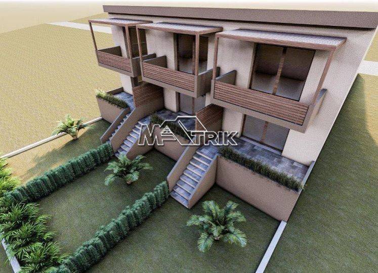 Chalkidiki, Metamorfosi, under construction two-level maisonette in a residential complex. It consists of three bedrooms, a kitchen-living room and two bathrooms. It has aluminum sliding window frames with double glazing and nets, tiled floor, armorized door, two a/c, individual oil heating system, solar water heater, storage, one parking space for exclusive use as well as a yard for exclusive use of approx. 50 sqm. It has been covered externally with thermal façade, it is located very close to the local market and the distance from the sea is 300m. The completion of the project will be completed in July 2026 and there are two other properties available with the same characteristics and price.