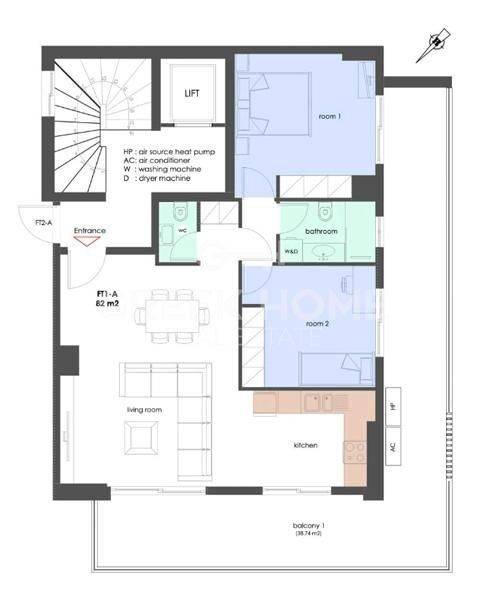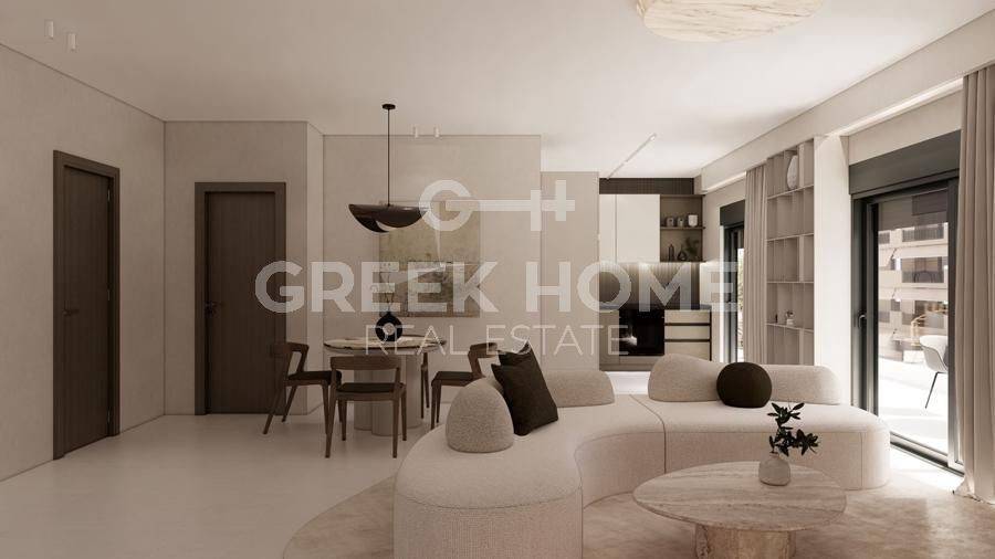 Nea Smyrni, Agia Fotini - Apartment 82sqm unfurnished, bedrooms 2, 1st, under construction, constructionstage concrete, year built 2025, energy class A, living room, hall, kitchen, bathroom, wc, heating type: autonomous (heat pump), air condition, parking ground floor, quiet, dual aspect apartment, luminous, corner, unobstructed view view, frontage, electric roller shutters, storage space 6sqm, solar heater, external thermal insulation, balconies, large balconies, balcony 40sqm, tents, elevator, thermal shut-off frames, double glazed windows, door screen, wood & tile floors, handicap ramp, secure door, alarm, video doorbell, internet, price is negotiable, special offer, close to park (up to 200m), close to square (up to 500m).