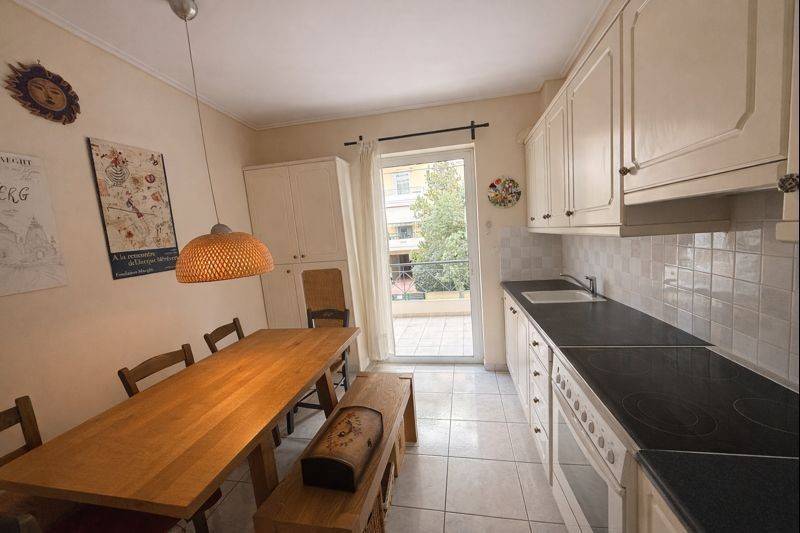 Apartment with a parking for rent in a very good location in Nea Erythrea. This 2 bedroom apartment is located on the first floor of a well maintained building. It has 1 parking space under pilotis and 1 storage room. The kitchen comes fully equipped. The apartment is partly furnished.