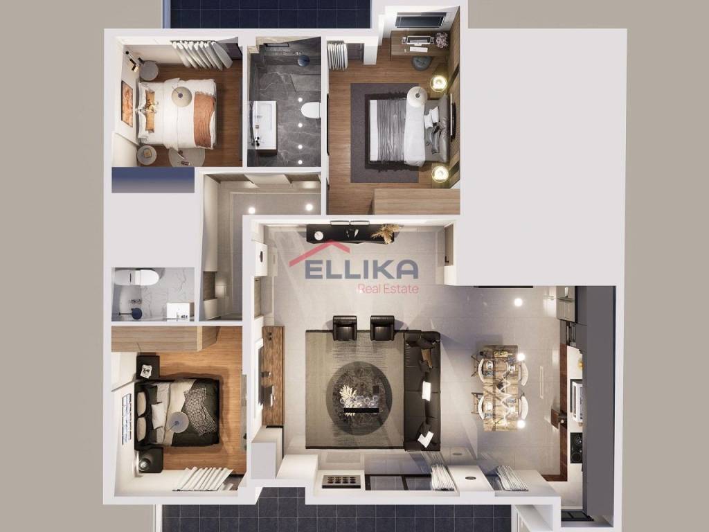 NEA SMYRNI An appealing 114 sq.m. apartment on a single level, situated on the 7th floor of a modern residential building completed in 2025. An excellent investment opportunity, located in a residential area very close to a main road, public transportation, shops, and schools. The property offers three comfortable bedrooms and a kitchen. It is dual-aspect, front-facing, and particularly bright. Heating is autonomous with natural gas, while there is pre-installation for air conditioning. The apartment has an energy efficiency rating of B+ and features quality finishes, including wood-effect tiled floors, aluminum window frames with double glazing, double-pane windows, and insect screens. The building is equipped with an elevator, video intercom, and security door, while there is also pre-installation for an alarm system. Additional features include thermal insulation (external thermal facade), a storage room, and a closed garage parking space. Property Code: 105274 Price: €500,000