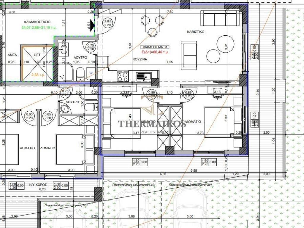 Πωλείται νεόδμητο, διαμέρισμα, 75τ.μ., πρόσοψης, στην περιοχή "Θέρμη". Πρόκειται για ένα γωνιακό, διαμπερές και φωτεινό ακίνητο. Βρίσκεται στο ισόγειο της οικοδομής. Το ακίνητο είναι βαμμένο και αποτελεί μια αξιόλογη επιλογή για φοιτητές και εργαζόμενους. Αυτή τη στιγμή βρίσκεται υπό κατασκευή. Αποτελείται από 2 υπνοδωμάτια με ντουλάπες, σαλοκουζίνα και 1 μπάνιο. Επιπλέον διαθέτει βεράντα, αποθήκη και θέση στάθμευσης. Στα εσωτερικά του στοιχεία αξίζει να σημειωθούν η θωρακισμένη πόρτα ασφαλείας και η δομημένη καλωδίωση. Διαθέτει κουφώματα αλουμινίου. Τα δάπεδα είναι από πλακάκια. Διαθέτει αυτόνομη θέρμανση με φυσικό αέριο (ατομική). Επιπρόσθετα υπάρχει ενδοδαπέδια θέρμανση. Η ενεργειακή του κλάση είναι A. Ο προσανατολισμός είναι βορειοανατολικός. Βρίσκεται κοντά σε αεροδρόμιο και πανεπιστήμιο. Με βάση τα χαρακτηριστικά του μπορεί να χαρακτηριστεί ως μια πολύ καλή επενδυτική επιλογή. Τέλος διαθέτει μονοφασικό ρεύμα. Τιμή πώλησης: 195000€. Το ακίνητο είναι διαθέσιμο από τις: 30/12/2027. Κωδικός ακινήτου: 11146 Η διεύθυνση του ακινήτου δεν ανταποκρίνεται στην πραγματικότητα για ευνόητους λόγους. Το γραφείο Thermaikos Real Estate λειτουργεί βάσει της Ελληνικής νομοθεσίας Ν 4072/11-4-2012. Οι πληροφορίες και τα χαρακτηριστικά των ακινήτων έχουν καταχωρηθεί βάσει στοιχείων και πληροφοριών που προσκόμισε ο ιδιοκτήτης του ακινήτου. Για περισσότερα ακίνητα επισκεφθείτε την ιστοσελίδα μας http://www.thermaikosrealest.gr. Thermaikos Real Estate Κλεάνθους 39, Θεσσαλονίκη, Ελλάδα http://www.thermaikosrealest.gr info@thermaikosrealest.gr Τηλέφωνο: 2310900700 Κινητό: 6907312688 Προσοχή! Για την υπόδειξη του ακινήτου είναι απαραίτητη η υπόδειξη της αστυνομικής ταυτότητας και του Α.Φ.Μ. σας σύμφωνα με τον Ν.4072/11-4-2012 ΦΕΚ 86 Α.