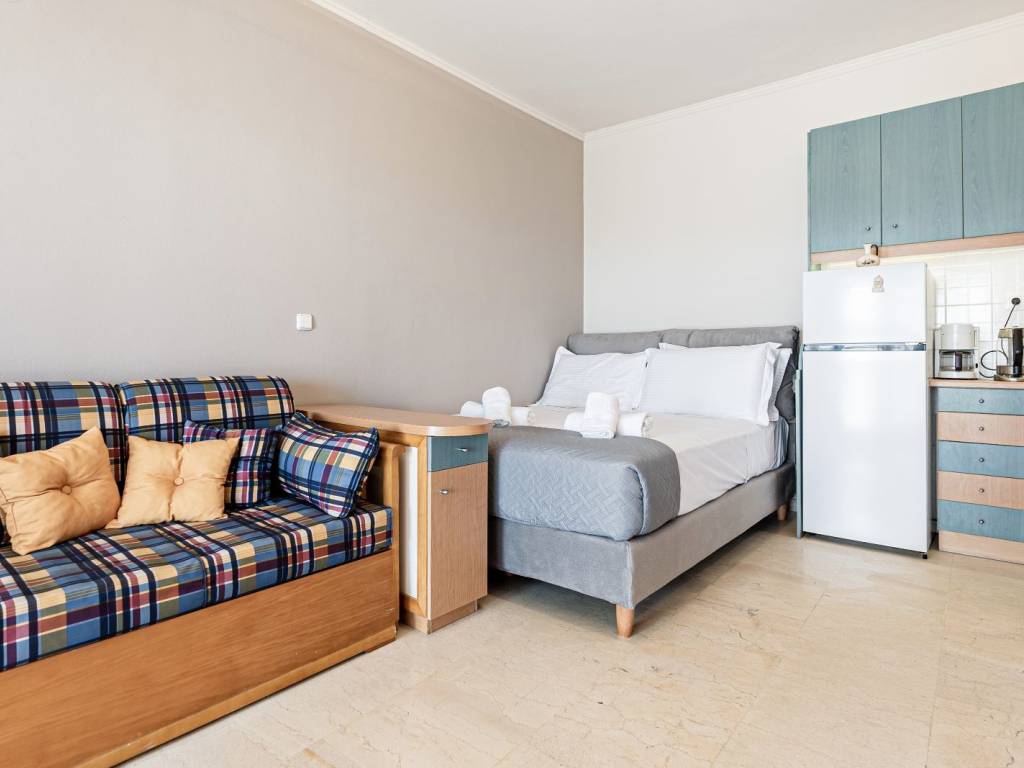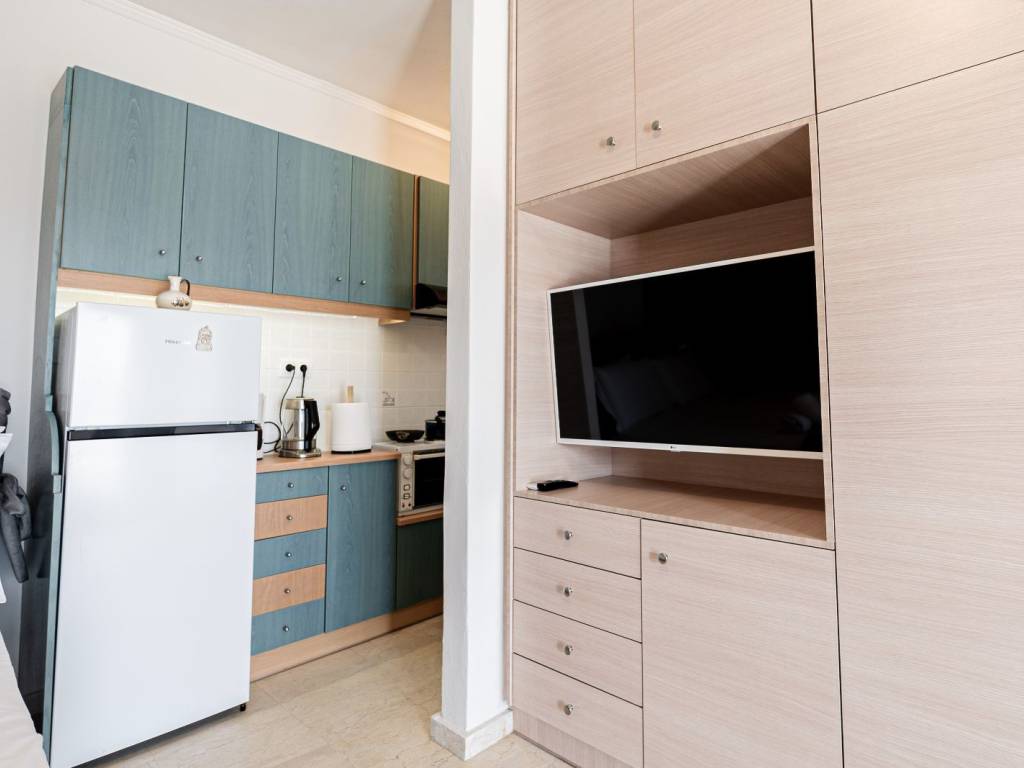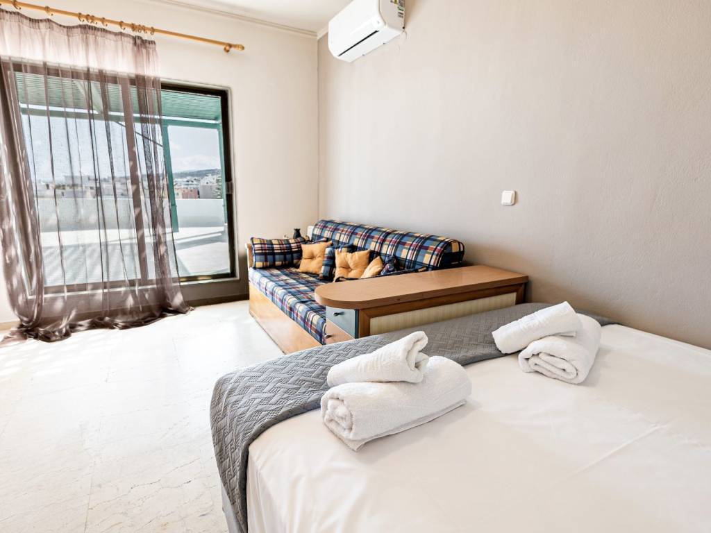 The studio is located on the top floor of a four-story building and features a private rooftop area, offering unique panoramic views of the port, the sea, and the city of Rethymno. It is situated in a particularly lively area, with immediate access to supermarkets, shops, and restaurants, while at the same time remaining quiet and away from traffic noise. The Old Town of Rethymno is just a few steps away. The property has been recently renovated and is fully equipped with a brand-new bed, TV, solar water heater, washing machine, and spacious wardrobes. It also offers a 300 Mbps fiber-optic internet connection, which is included in the price.