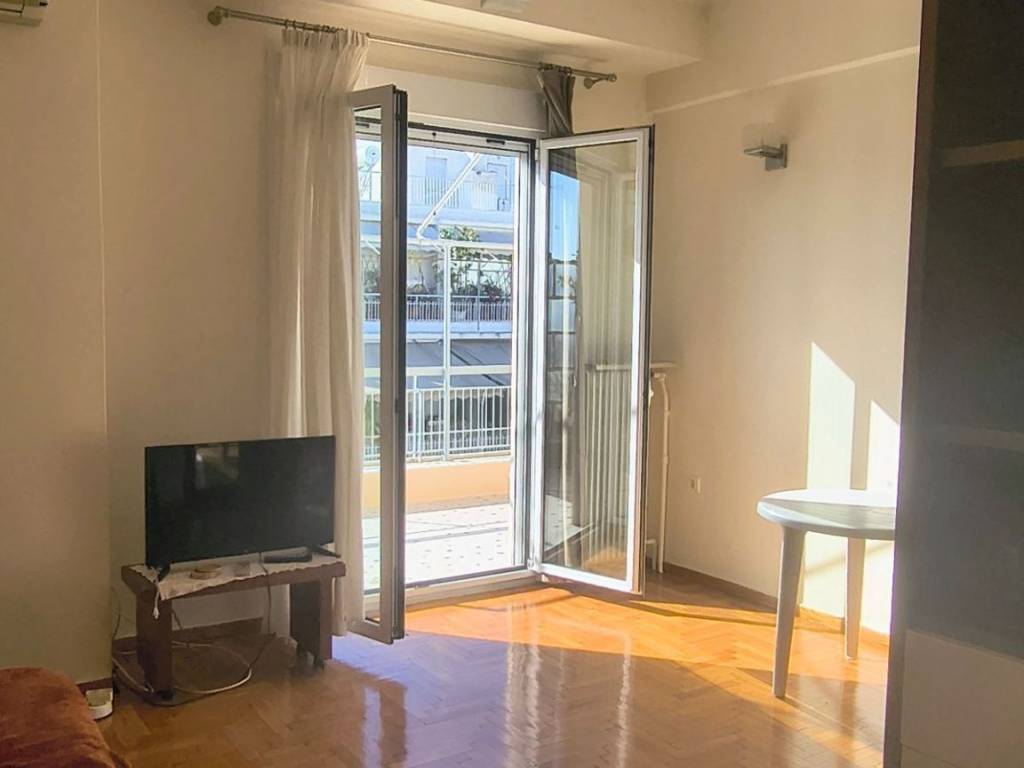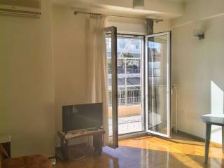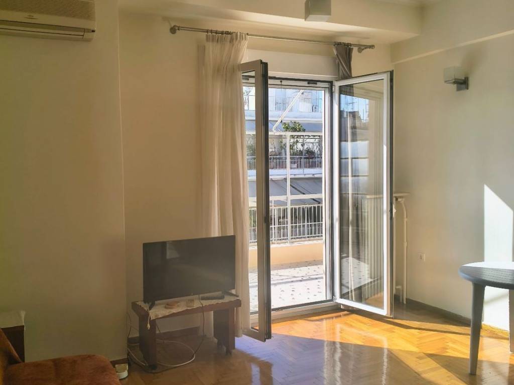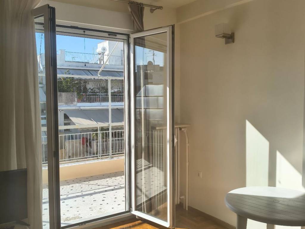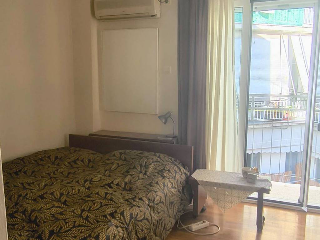 Two-room penthouse on the 5th floor, 48 sq.m., front-facing, sunny, in a quiet neighborhood of Pagrati. It is renovated, fully furnished and equipped with all electrical appliances. It is airy, with a balcony in the bedroom and a 20 sq.m. veranda in the living room and kitchen. It has a comfortable layout with a separate kitchen and a separate bedroom. It is located near a square, the Pagrati Grove and 15 minutes walk from Evangelismos Metro station. Pets are not allowed for health reasons.