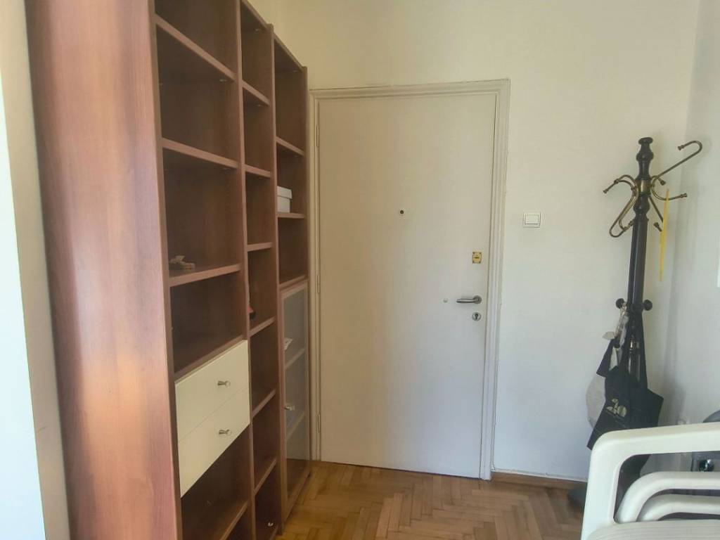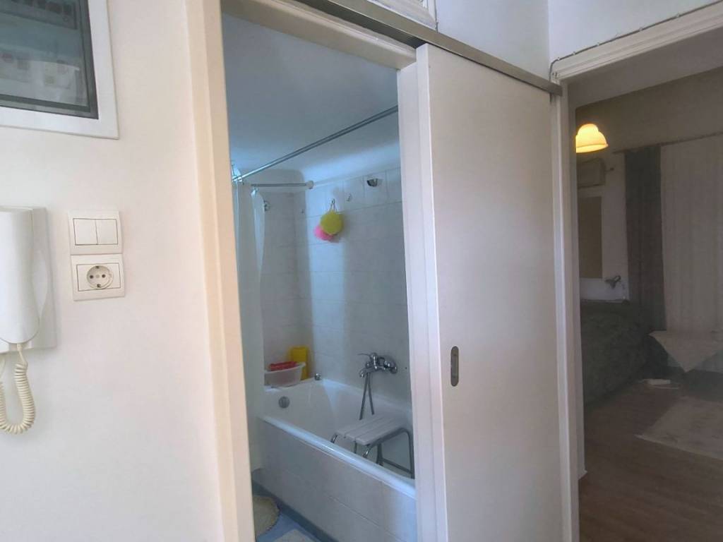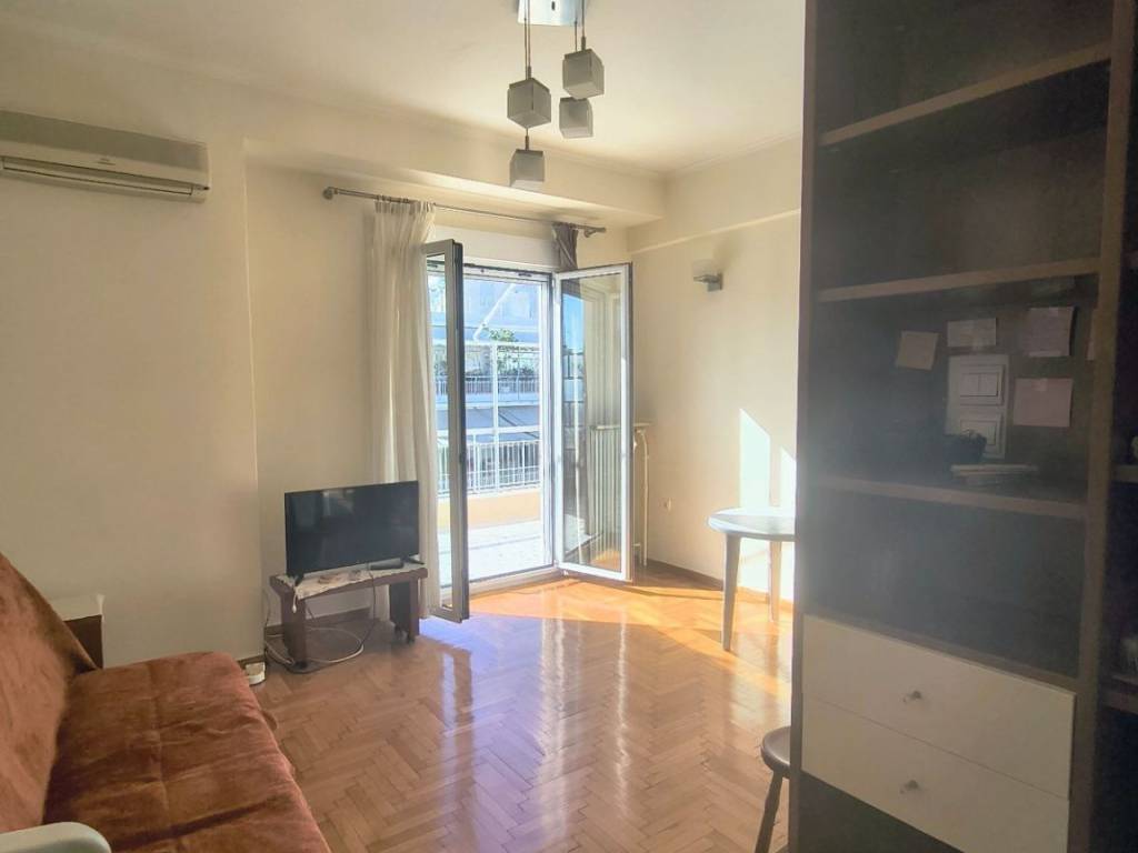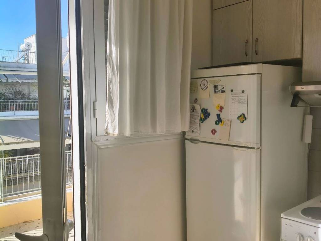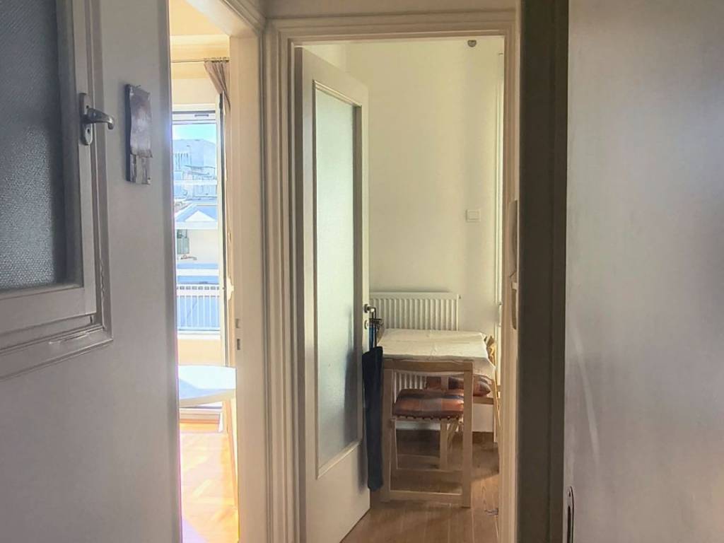 Two-room penthouse on the 5th floor, 48 sq.m., front-facing, sunny, in a quiet neighborhood of Pagrati. It is renovated, fully furnished and equipped with all electrical appliances. It is airy, with a balcony in the bedroom and a 20 sq.m. veranda in the living room and kitchen. It has a comfortable layout with a separate kitchen and a separate bedroom. It is located near a square, the Pagrati Grove and 15 minutes walk from Evangelismos Metro station. Pets are not allowed for health reasons.