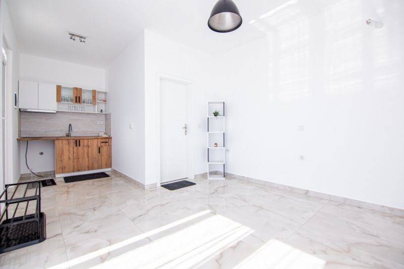 For sale: 25 m² detached house with an additional 25 m² semi-basement on a 310 m² plot in Ofrinio Beach, Kavala. The detached house is newly built and consists of a living room-kitchen, bathroom, and spacious veranda. An external staircase leads to the basement, which consists of a hallway and two rooms. Additional features of the property include synthetic window frames, screens, tiled floors, solar water heater, and pre-installation for air conditioning. The exterior of the property is landscaped with small trees. It is located just 900 meters from the coastal road and faces west.
