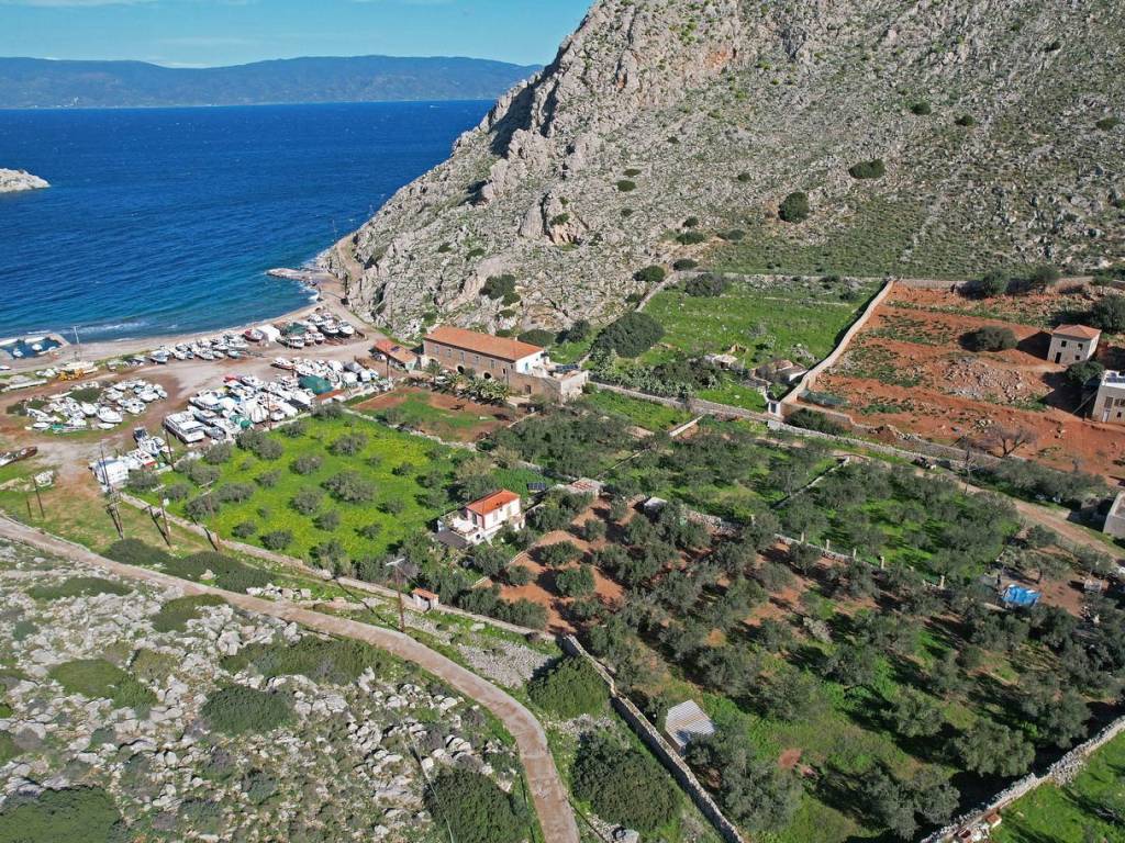 seaside plot of 15,808 sq.m., with a facade on the coastal front of 90 m., even and buildable, with a remaining building factor of 2,435 sq.m. approximately - there is a two-story residence of 725 sq.m. (the historic Voulgaris Mansion), coverage factor of 10%, suitable for land uses such as tourist development, agricultural and livestock uses, commercial warehouses, utility buildings and others, in an excellent location in the area, access via a provincial road or by sea, with unobstructed sea view, 20' walking distance is the αrea of Vlychos and 25' walking distance is the port of Hydra, ONLY 50% of the property is available for sale, unique case of property for exploitation or investment in the island area EXCLUSIVITY AKN Properties - Golden 3 / akng3.reagency@gmail.com