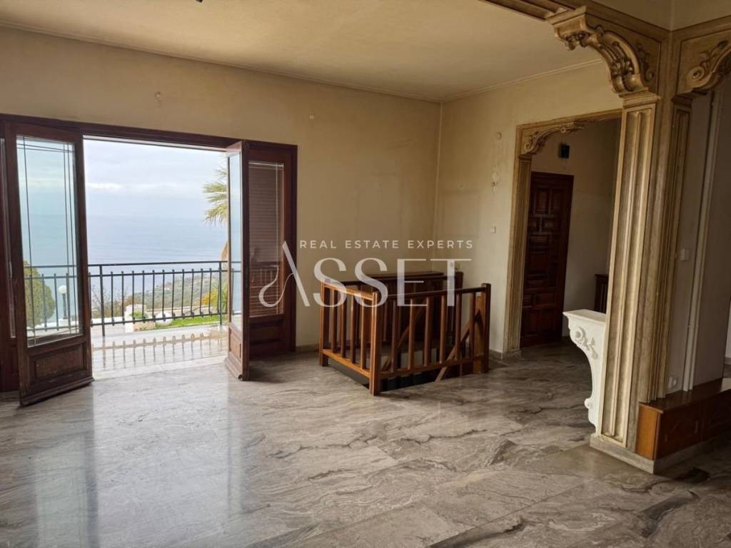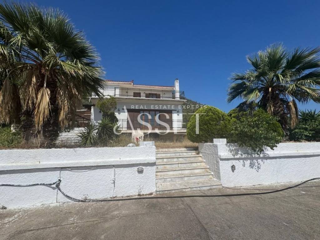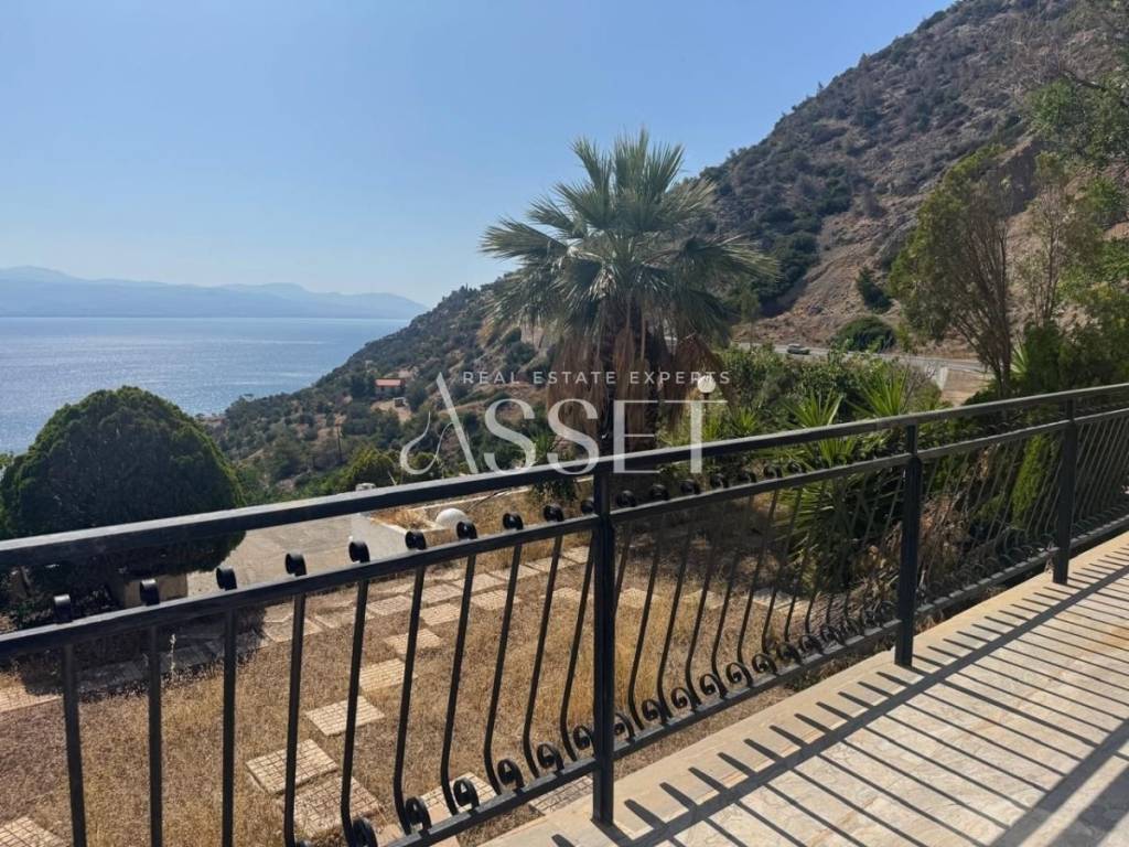 For sale, a unique property with a total land plot area of 5,800 sq.m., located on the Loutraki – Perachora provincial road, in an excellent position, directly above the Poseidon Hotel, offering unobstructed views and easy access. Within the plot, there is a main residence of 220 sq.m., developed over three levels, comprising 80 sq.m. on the ground floor, 80 sq.m. on the first floor, and a 60 sq.m. auxiliary basement area featuring a playroom and laundry room. Additionally, the property includes an independent guesthouse of 60 sq.m., a large swimming pool, three covered outdoor parking spaces, as well as two closed external storage rooms. The outdoor area also features a spacious landscaped plaza with BBQ and dining areas, ideal for entertaining and hosting gatherings. This property is suitable for use as a private residence or for touristic and investment purposes.