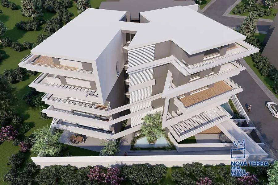 VARKIZA - VARKIZA, Duplex / Triplex Apartment,, Sale, 149 sq.m, year built 2022, 3 rooms, Ground Floor, 1st, View: Mountain view, Various Characteristics: Balcony, Bath (3), Fire Place, Garden, Kitchen, Living room, Store Room, Swimming Pool, Toilet, Master Bedrooms: 3 Master Bedrooms, Heating: Air Conditioning, Autonomous Gas Heating, Floor heating, Access road, Aluminium panels, Bright, Double-glazing, Facade, From Side to Side, Luxury, Minimal, Newly built, Night charge, Painted, Residential area, Screens, Security Alarm, Security Door, Solar Heating, Tents, In perfect condition: : : Parking area: Garage, Energy class: A. property ID: 47022, www.nova-terra.gr