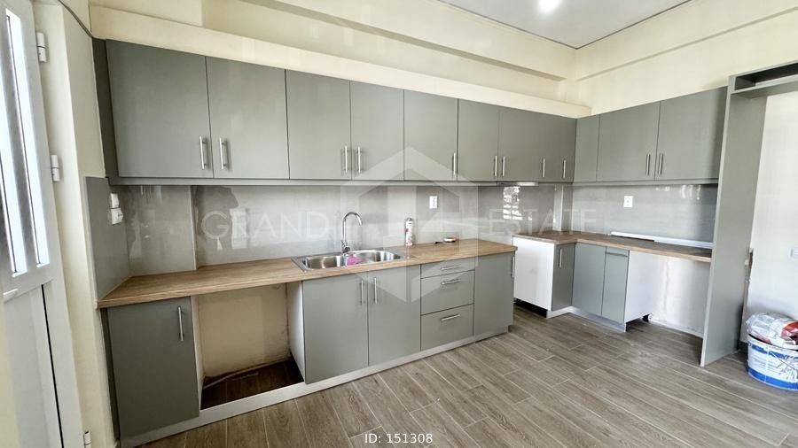 Gerakas, Centre - Apartment 135sqm plot 165sqm, unfurnished, bedrooms 3, levels 1, 1st, excellent condition, year built 1980, renovation year 2019, energy class A, 2 living rooms, hall, kitchen, bathroom, wc, heating type: autonomous (oil), parking open space, quiet, dual aspect apartment, luminous, corner, unobstructed view view, frontage, painted, electric roller shutters, storage space, solar heater, fireplace, balconies, large balconies, tents, elevator, loft storage, aluminum frames, double glazed windows, door screen, ceramic tiles floors, office, night electricity discount rate, secure door, alarm, video doorbell, luxurious, within city plan, residential zone, north-eastern orientation, access from asphalt, close to metro/train (up to 100m), close to super market (up to 100m).