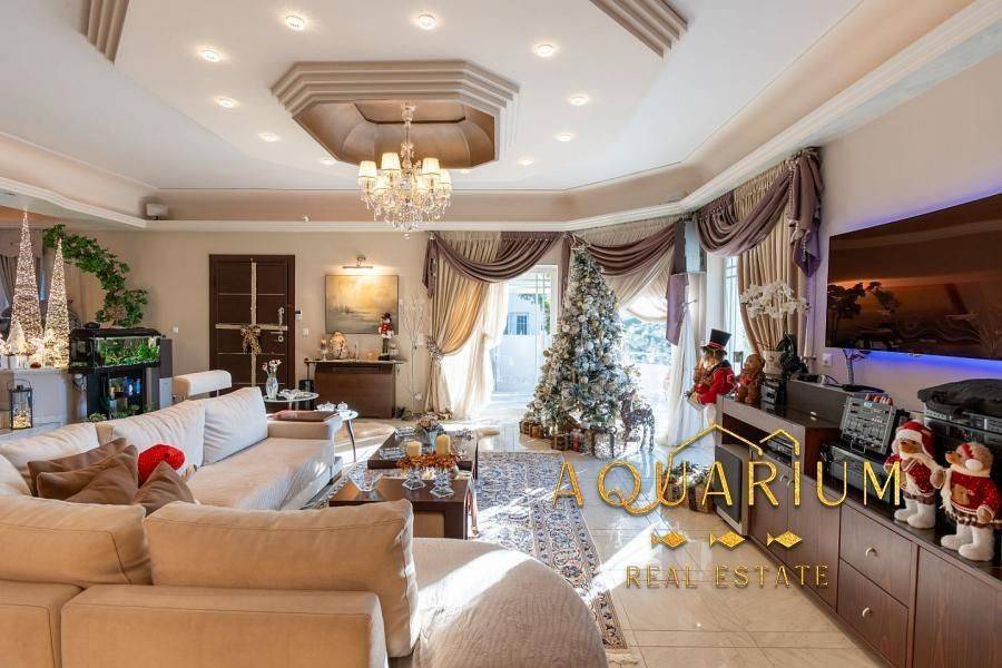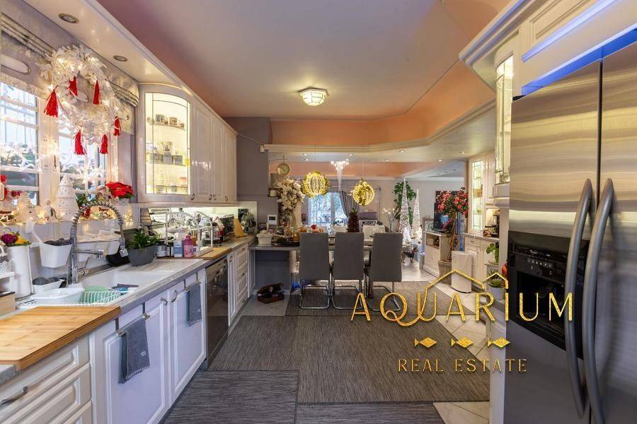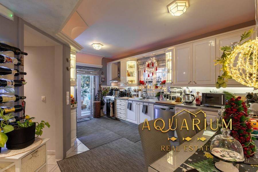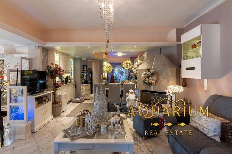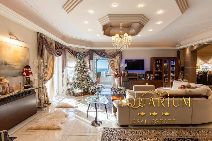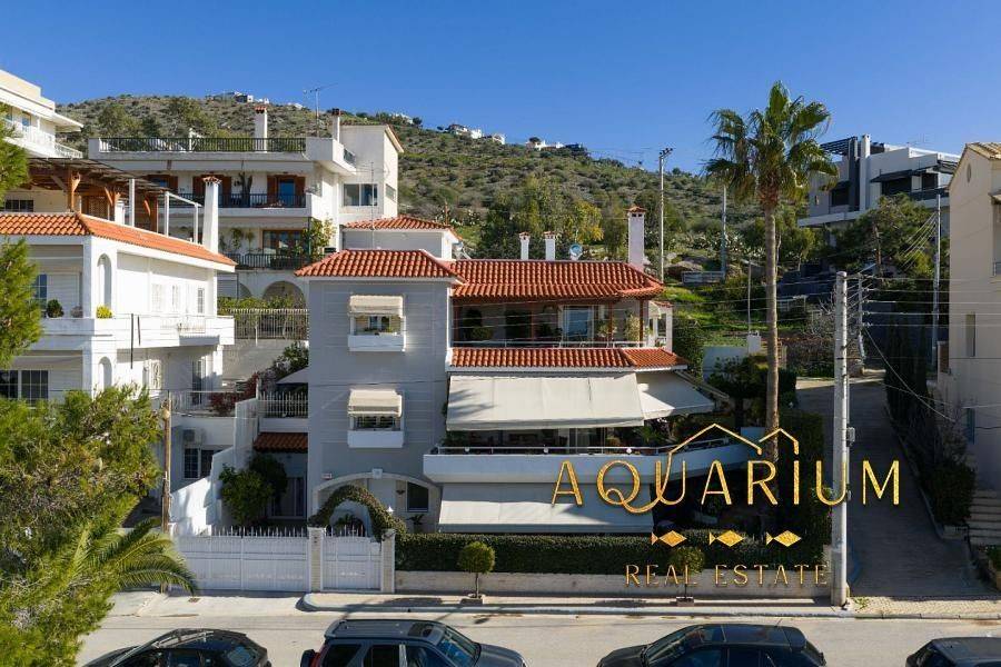 GLYFADA- Aixoni, Newly built maisonette 265 sq.m., ground floor & 1st floor with unlimited sea view. Consists of: Ground floor with open plan living room - dining room - sitting room - kitchen. 1st floor: 4 bedrooms (1 master with fireplace and bathroom with jacuzzi) and a shared bathroom. It has parking, storage room, lofts, garden around, fireplace, AC inverter cooling-heating in all areas, heating autonomy per floor, internal elevator, alarm, sound system installation (stereo & home cinema). Located in a VIP area with 24-hour security by state and private police Also available without furniture