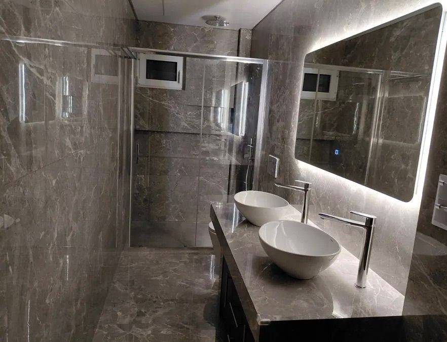 πλήρως και πολυτελώς ανακαινισμένο διαμέρισμα 88 τ.μ. στο Ελληνικό (Αγία Παρασκευή), υπερυψωμένο ισόγειο, γωνιακό, εξαιρετικά φωτεινό, χωρίς κοινόχρηστα. Διαθέτει 2 υπνοδωμάτια (master με WC), 2 μπάνια, ενιαίο σαλόνι–κουζίνα με νησίδα και εξοπλισμό Bosch, μεγάλη γωνιακή βεράντα 27 τ.μ. και όμορφο κήπο. Αυτόνομη θέρμανση με αντλία θερμότητας, κλιματισμό, ηλιακό, τριφασικό/νυχτερινό ρεύμα, σύγχρονα κουφώματα, θερμοπρόσοψη, πλήρες σύστημα συναγερμού και κάμερες.