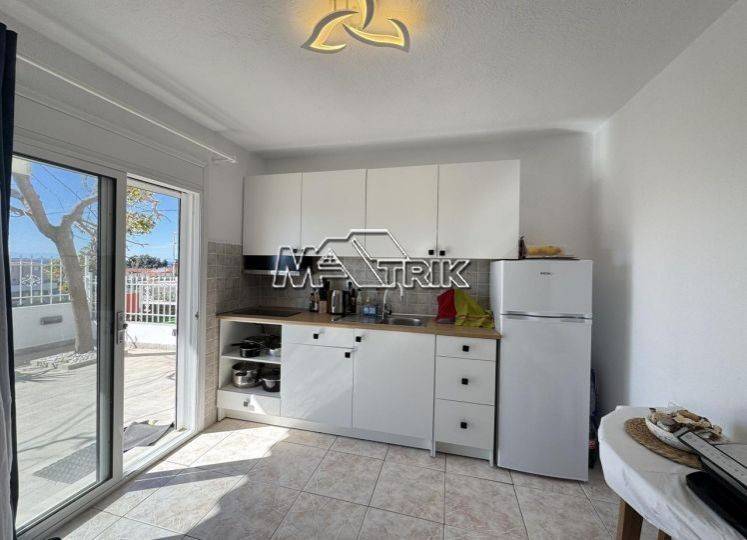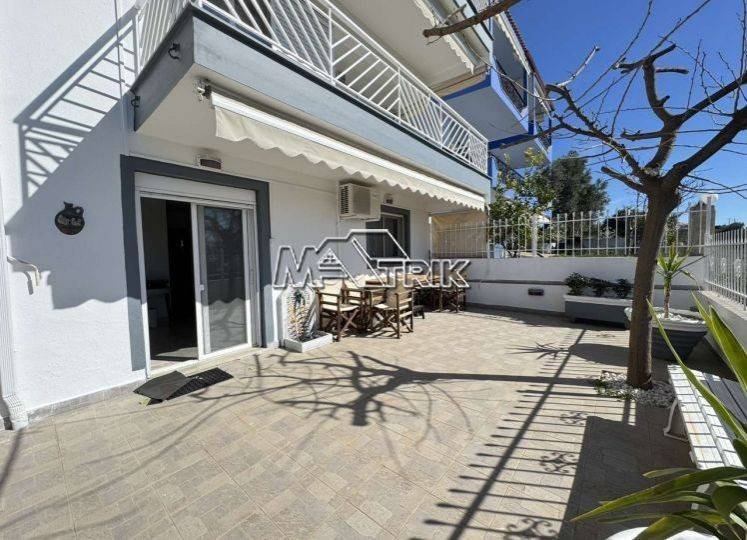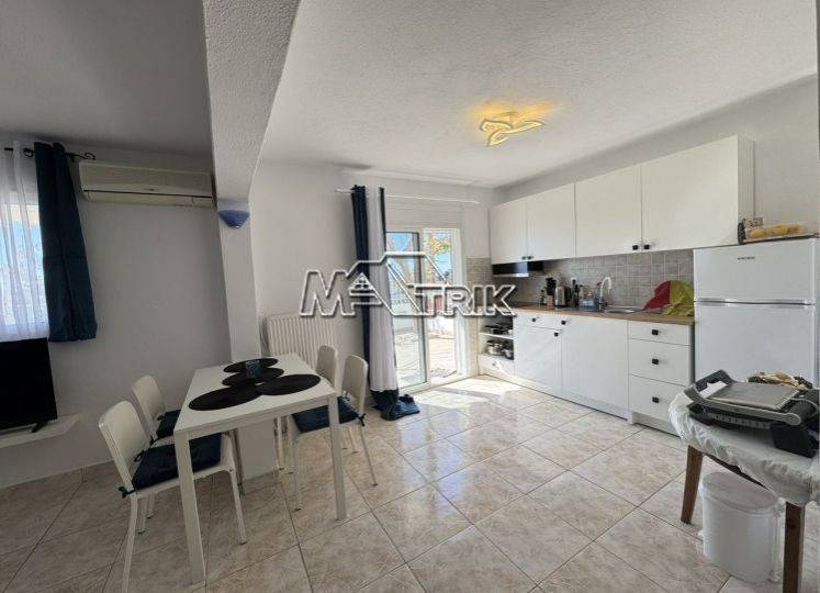 Chalkidiki, Gerakini, renovated ground floor apartment of 70 sqm in an apartment complex, with a courtyard of exclusive use of approximately 50 sqm. It consists of one bedroom, a living room - kitchen and one bathroom. It has aluminum window frames with double glazing, recoil and nets, tiled floor, one a/c, armorized door, solar heater, water pressure pump, individual heating system with oil, awnings, storage, as it is fully furnished and equipped with all electrical appliances. It is located in a very quiet neighborhood and its distance from the sea is 200m. The location of the property and its design make it an excellent choice for both permanent and holiday residence, as well as for tourist development with a great return on capital. There are also available first floor apartments of 60 sqm with the same characteristics at a price of 150,000 euros and second floor apartments of 60 sqm with a price of 160,000 euros.