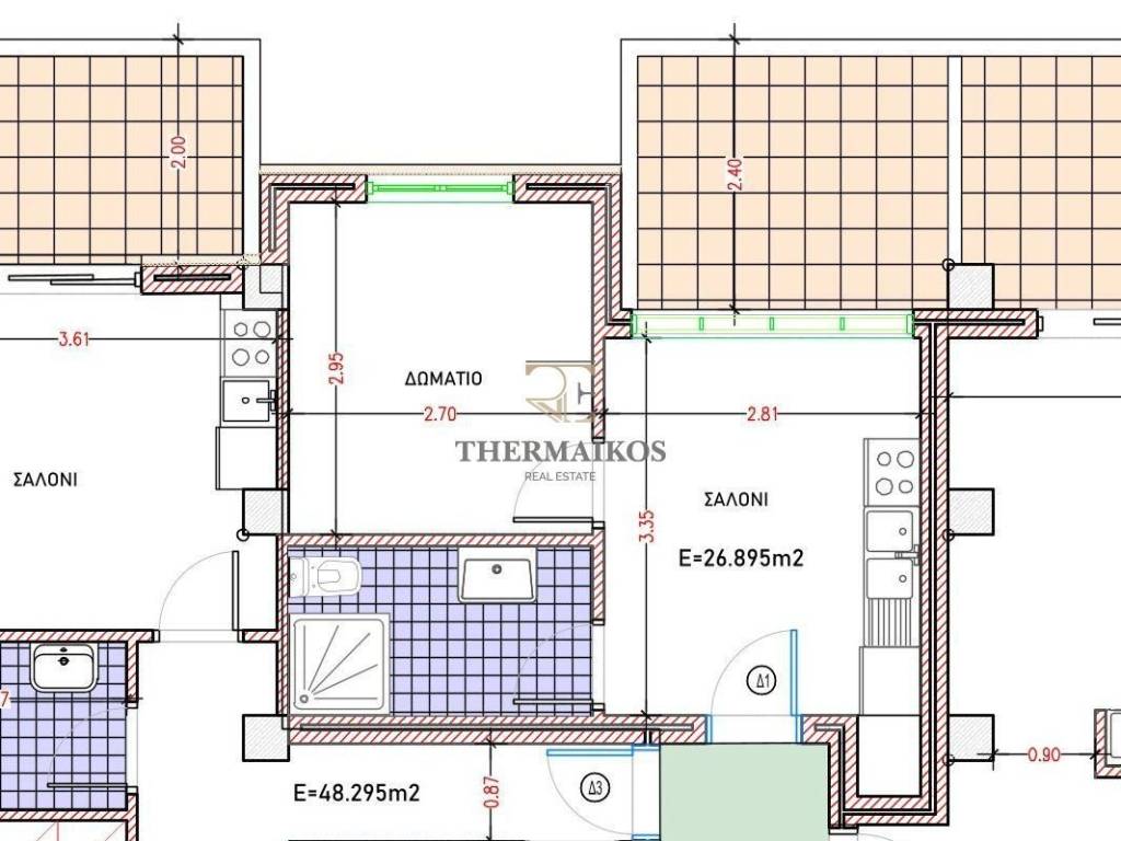 Πωλείται νεόδμητο, διαμέρισμα, 43τ.μ., πρόσοψης, στην περιοχή "Καλαμαριά - Νέα Κρήνη". Πρόκειται για ένα πολυτελές και φωτεινό ακίνητο. Βρίσκεται στον 2ο όροφο της οικοδομής και διαθέτει ασανσέρ. Το ακίνητο είναι βαμμένο. Αυτή τη στιγμή βρίσκεται υπό κατασκευή. Αποτελείται από 1 υπνοδωμάτιο με ντουλάπα, σαλοκουζίνα και 1 μπάνιο. Επιπλέον διαθέτει βεράντα και αποθήκη. Στα εσωτερικά του στοιχεία αξίζει να σημειωθούν η θωρακισμένη πόρτα και η δομημένη καλωδίωση. Διαθέτει κουφώματα αλουμινίου με διπλά τζάμια και είναι εξοπλισμένα με σίτες. Τα δάπεδα είναι από ξύλο και πλακάκια. Διαθέτει αυτόνομη θέρμανση με φυσικό αέριο (ατομική). Επιπρόσθετα υπάρχει ενδοδαπέδια θέρμανση. Η ενεργειακή του κλάση είναι A. Έχει θέα στη θάλασσα. Βρίσκεται κοντά σε στάση λεωφορείου, αεροδρόμιο, σχολείο, πάρκο και παραλία. Με βάση τα χαρακτηριστικά του μπορεί να χαρακτηριστεί ως μια πολύ καλή επενδυτική επιλογή. Τιμή πώλησης: 180000€. Κωδικός ακινήτου: 11182 Για περισσότερα ακίνητα επισκεφθείτε την ιστοσελίδα μας http://www.thermaikosrealest.gr. Thermaikos Real Estate Κλεάνθους 39, Θεσσαλονίκη, Ελλάδα http://www.thermaikosrealest.gr info@thermaikosrealest.gr Τηλέφωνο: 2310900700 Κινητό: 6907218688 ΥΠΕΥΘΥΝΟΣ ΑΚΙΝΗΤΟΥ: ΠΑΠΑΔΟΠΟΥΛΟΣ ΛΑΖΑΡΟΣ Προσοχή! Για την υπόδειξη του ακινήτου είναι απαραίτητη η υπόδειξη της αστυνομικής ταυτότητας και του Α.Φ.Μ. σας σύμφωνα με τον Ν.4072/11-4-2012 ΦΕΚ 86 Α.