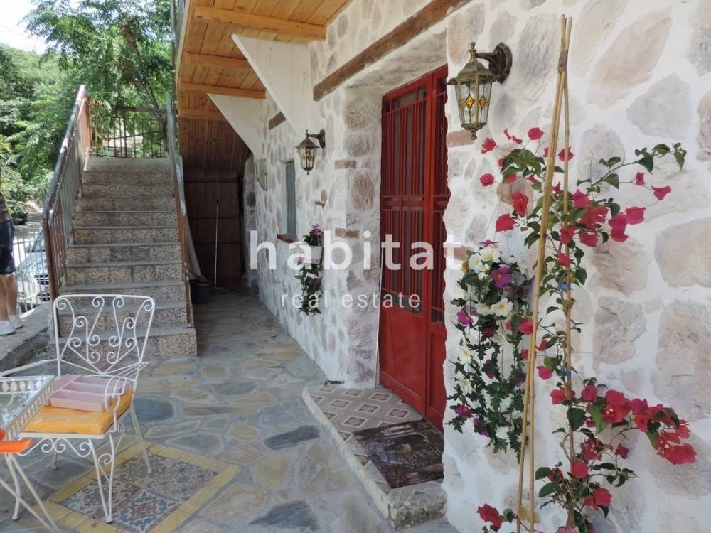 The ground floor accommodates a bright and spacious lounge area with a kitchen, as well as a guest WC, while the upper floor hosts three spacious bedrooms and an elegant bathroom. The property is surrounded by an aesthetically pleasing garden, includes a storage room and an external parking space, while the open views towards the sea and the mountains enhance the sense of tranquility and privacy.