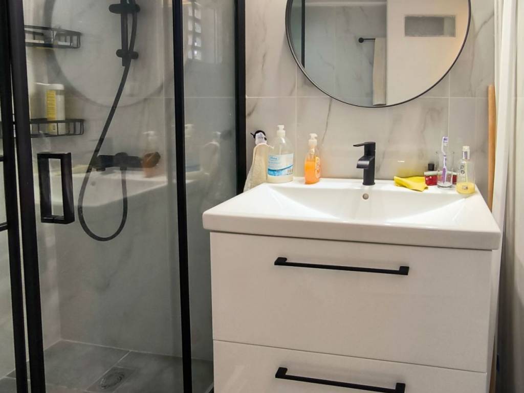 • Modern bathroom with shower