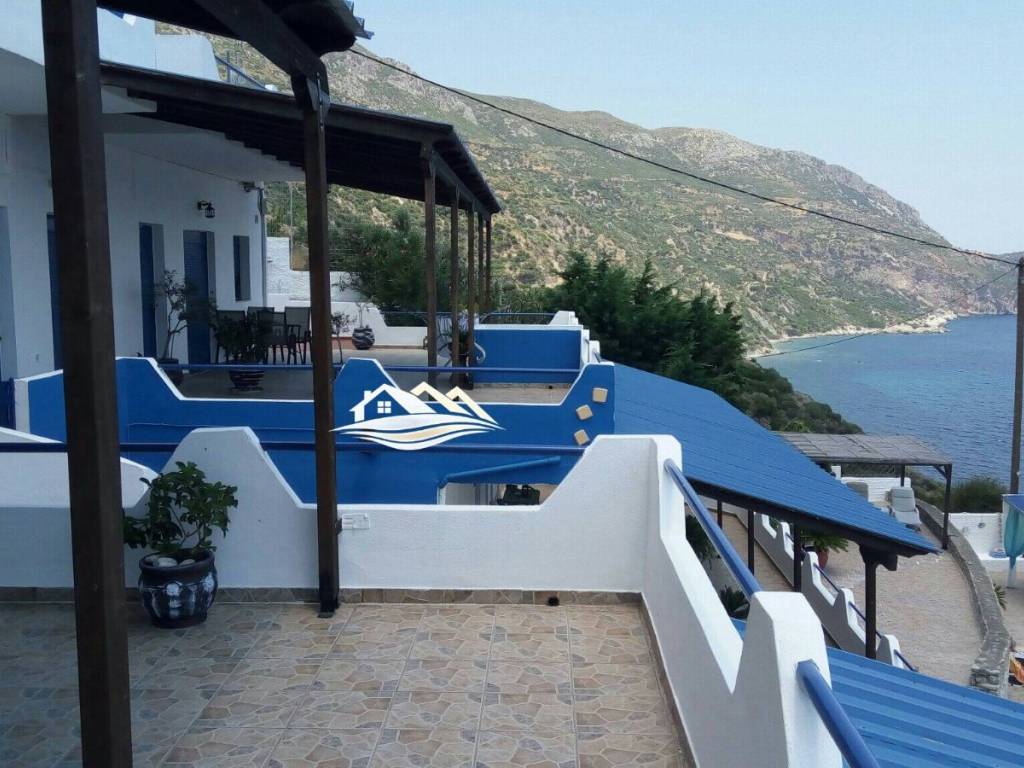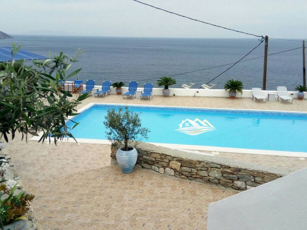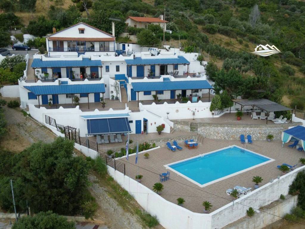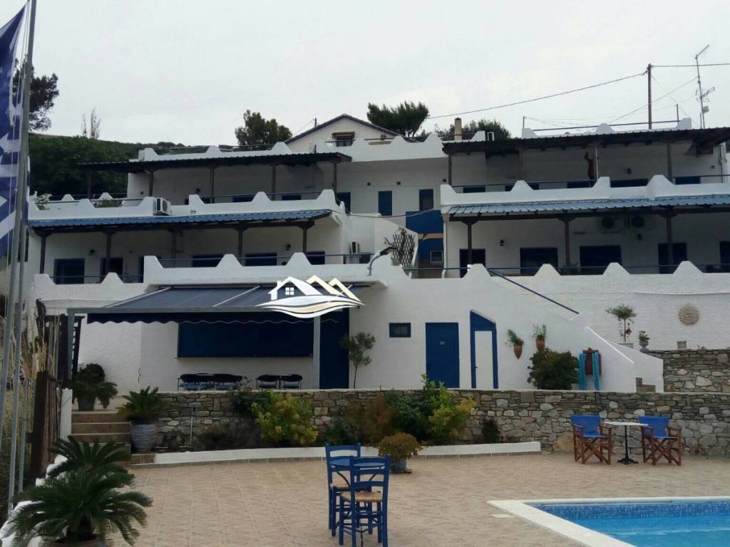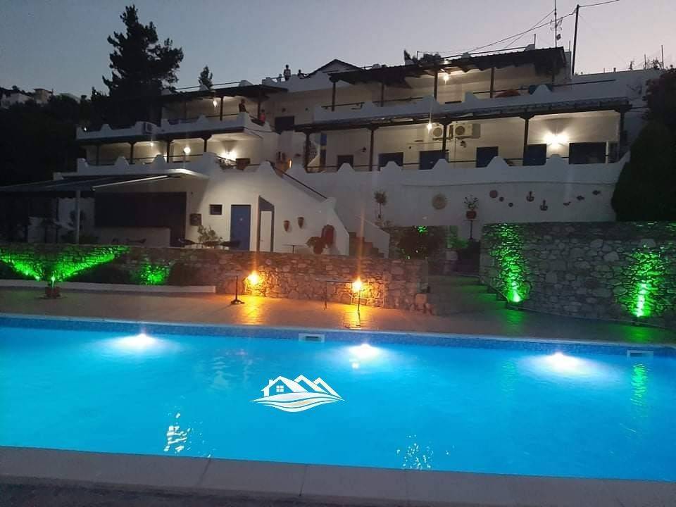 Evia, Korasida Beach, hotel unit for sale, 480 sq.m., on a plot of 2067 sq.m., 2 levels with autonomous oil heating. It consists 1 house with 4 bedrooms, open-plan living room/kitchen, 2 bathrooms and a storage room, 4 studios of 40 sq.m. each, and 6 studios of 28 sq.m. each. All rooms have their own bathroom and kitchen with electrical appliances, and feature synthetic window frames with double glazing, air conditioning, satellite dish, and tiled floors. It also has a beautifully landscaped surrounding area with a large swimming pool and a refreshment area with a WC. It is located on a sloping plot, with an unobstructed view, just 150m from the sea, with easy access to by foot