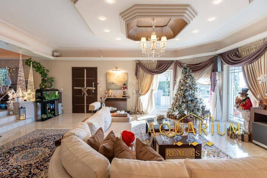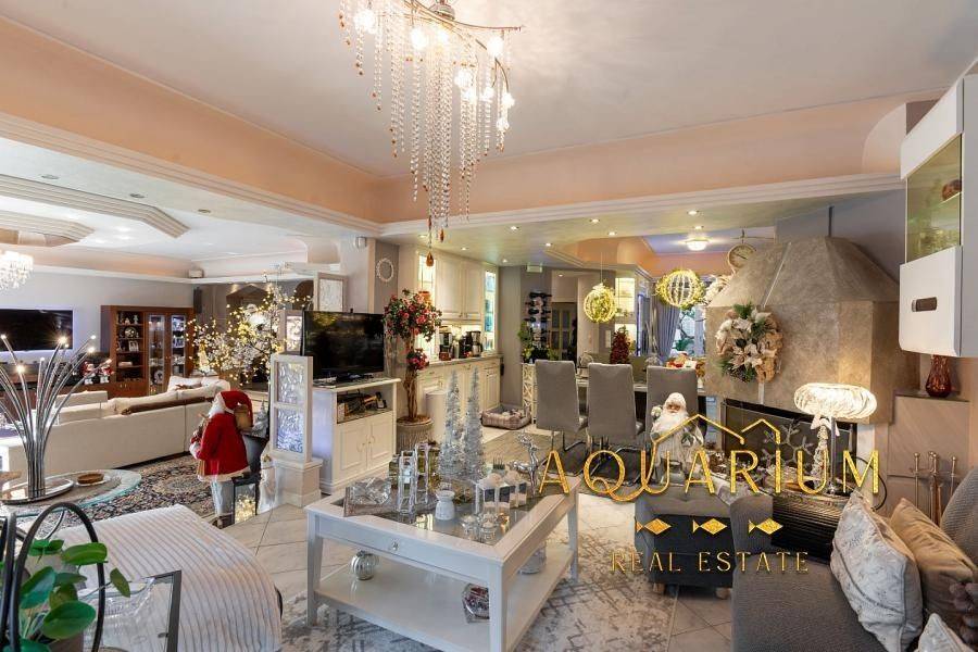 GLYFADA - Eksoni, Newly built detached house of 465 sq.m. ground floor and 1st floor, consisting of 2 independent residences with unlimited sea views and a garden all around, 1) The First property is a Ground floor 175 sq.m. : It consists of an open plan living room - dining room - kitchen, 2 master bedrooms with their own bathroom. It has a fireplace, electric awnings, all windows are electric, built-in electrical appliances (dishwasher, washing machine, stove, oven, extractor hood), hidden LED lighting, sound system installation (stereo & home cinema), 4 storage rooms, many wardrobes. Renovated in 2018. 2) The Second is a Maisonette of 265 sq.m. Ground & 1st floor: Ground floor: Open plan living room - dining room - sitting room - kitchen. 1st floor: 4 bedrooms in total (1 master), the master bedroom with fireplace and its own bathroom with jacuzzi, three additional bedrooms with a shared bathroom. It has hidden LED lighting with control, sound system installation (stereo & home cinema), fireplace, electric windows, mezzanines, many closets, many closets. The entire property has the possibility of consolidation and the elevator has an installation for the entire property. Completion year 2000. It is located in a VIP area with 24-hour security by state and private police. It is 5 minutes from Voula beach, 27 minutes from the Airport and 13minutes from Astir Beach of Vouliagmeni.
