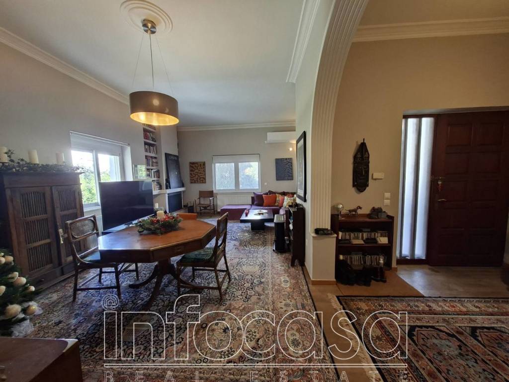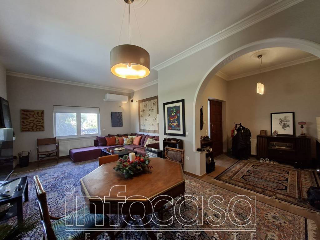 Chalandri: In a prime location near Chalandri Square, the Metro, and public transportation, a well-maintained ground-floor apartment of 130 sq.m., part of a two-family house, set on an exceptional 691 sq.m. plot. The residence was fully renovated in 2003, and partially renovated in 2018. It consists of a large entrance hall, a spacious reception/living area with a fireplace, dining area, a closed kitchen with built-in electrical appliances, and an additional bright living room (or daily dining area) with views of the beautiful garden. The apartment includes 3 bedrooms (1 master) and 2 bathrooms. The property features wooden floors throughout, autonomous oil heating, a boiler, a solar water heater, aluminum window frames with double glazing and insect screens, electric shutters, a large front veranda, and a stunning garden at the rear of the house (with its own borehole). Additionally, it offers one outdoor parking space and a storage room. The residence is located at a strategic point that combines tranquility with excellent access to Chalandri’s local market, schools, and the area’s dining and entertainment venues. Price: €390.000. Infocasa, contact phone: 2106233945, email: info@infocasa.gr