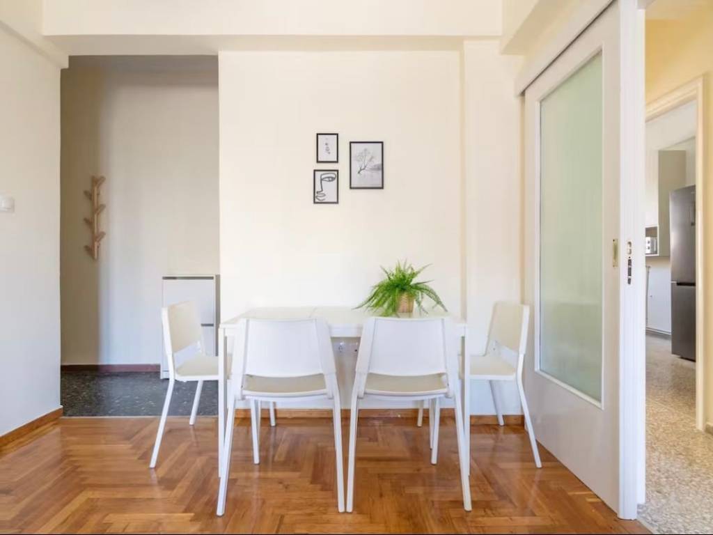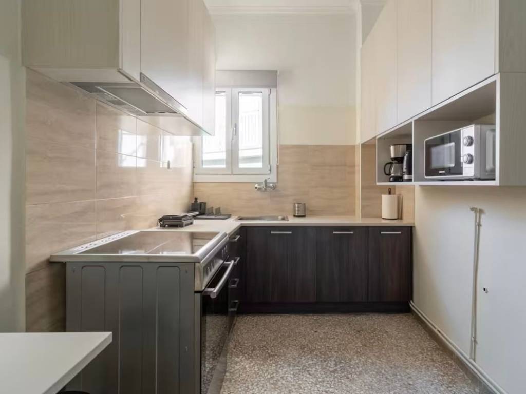 Two large bedroom apartment on Syrakou Street 6 in Kolonos, directly in front of the square. Fully renovated in 2022. It features two large bedrooms, new sanitary ware, a new kitchen, and new furniture throughout the entire home, as it was completely renovated in 2022. It also has balconies with a view of the square. The apartment is very bright, comfortable, and offers complete convenience.