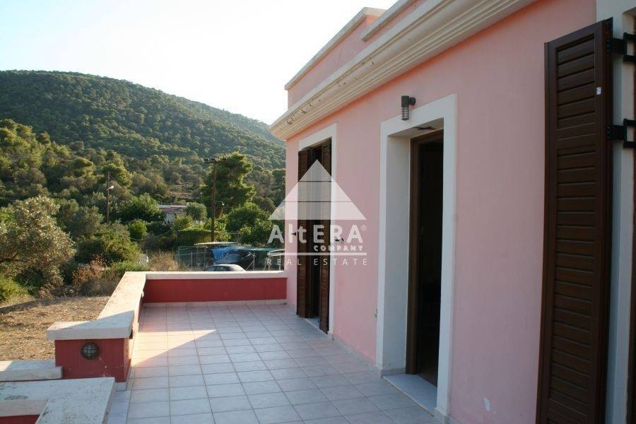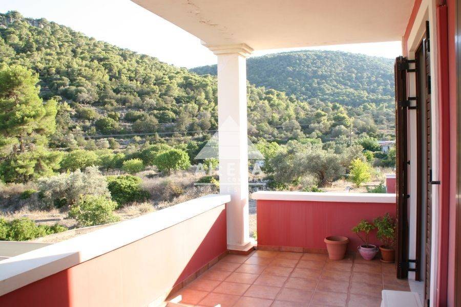 Objektcode: 17424 – Ägina, Alones: Möbliertes Einfamilienhaus auf drei Ebenen mit einer Gesamtfläche von 157 m² auf einem 2200 m² großen Grundstück zu verkaufen. Das Haus verfügt über vier Schlafzimmer, zwei Wohnzimmer, zwei Küchen, zwei Badezimmer und ein WC. Es wurde 2005 erbaut, hat die Energieeffizienzklasse B+ und ist mit einer Ölheizung, Bergblick, Aluminiumrahmen, Fliesenböden, Einbauschränken, Kamin, Klimaanlage, Elektrogeräten, Fliegengittern, Grill, Terrassenüberdachung und einer Innentreppe ausgestattet. Preis: 350.000 € Zu verkaufen: Einfamilienhaus mit 120 m² Wohnfläche und 37 m² Gästehaus in Ägina, Ortsteil Alones. Das Haus befindet sich in ruhiger Lage auf einem 2200 m² großen Grundstück und erstreckt sich über drei Etagen. Im Untergeschoss befinden sich zwei Schlafzimmer, ein Wohnzimmer, ein Badezimmer und eine Küche. Es verfügt außerdem über einen Kamin. Das Erdgeschoss besteht aus 2 Schlafzimmern und 1 Badezimmer, das Obergeschoss aus Wohnzimmer, WC und Küche. Neben dem Haus befindet sich ein 37 m² großes Gästehaus, das ebenfalls aus 2 Schlafzimmern und 1 Badezimmer besteht. Es wird mit einem Kamin und Öl beheizt. Die Rahmenkonstruktion besteht aus hochwertigem Aluminium. Klimaanlage ist in allen Räumen vorhanden. Es gibt einen offenen Parkplatz. Das Haus bietet einen herrlichen Blick auf die Berge. Baujahr: 2005. HÄLFTE ANTEIL ZU VERKAUFEN.