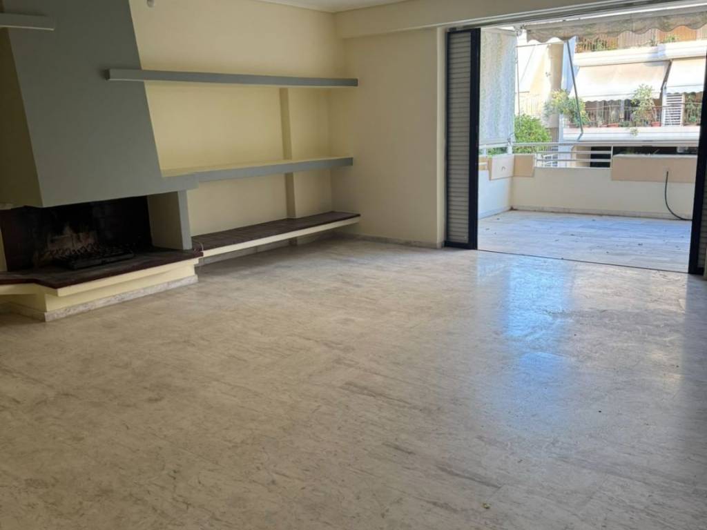 Bright, 1st floor apartment in an excellent and quiet location of Nea Smyrni (Leontios area). Large living room, dining room and kitchen in an open layout with fireplace. With 3 spacious and bright Bedrooms., 2 full bathrooms. Independent heating and air conditioning (A/C). Security door, installed alarm and elevator. Large verandas with awnings along the entire length of the apartment. Parking space in the driveway with remote-controlled security garage door. Private storage space.