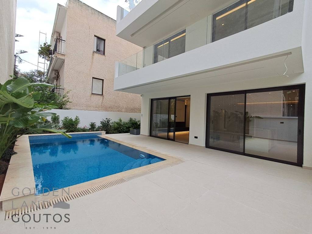 For sale: a modern, luxury two-level maisonette in Alimos, set in a prime and quiet corner location, within close proximity to public transport, shops, cafés, and restaurants, offering the perfect balance between convenience and quality living. The residence extends over the ground and 1st floors, with a total area of 188 sq.m., on a 275 sq.m. plot, featuring a façade, abundant natural light, and northeast orientation. It comprises a spacious living room with an energy-efficient fireplace, a contemporary kitchen, 3 master bedrooms with en-suite bathrooms, and 1 additional WC, providing a comfortable and functional layout ideal for family living. Built in 2025, with A+ energy efficiency, the property includes autonomous heating with a heat pump, underfloor heating, air conditioning, and boiler, along with aluminum frames with triple energy-efficient glazing for excellent thermal and sound insulation. Floors combine tile and wood, creating an elegant and warm atmosphere. Outdoor areas feature a private garden and swimming pool, perfect for relaxation and entertaining. Additional amenities include storage room, internal staircase, parking space, security door, alarm system, CCTV, window screens, electrical appliances, smart home features, and electric vehicle charging provision. Pets are allowed. A bright, modern, and energy-efficient home, ideal for those seeking luxury, privacy, and an upgraded lifestyle in the Southern Suburbs of Athens.