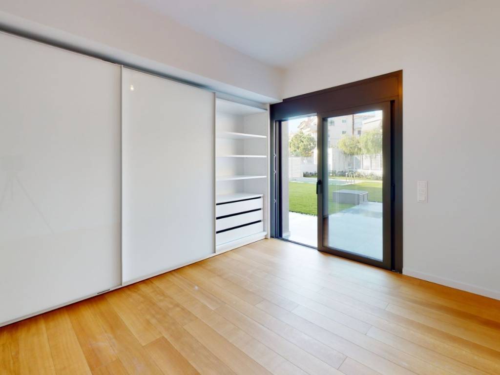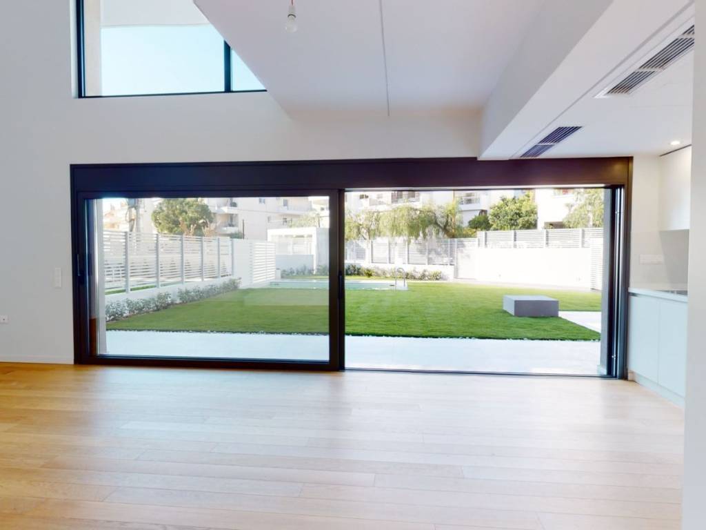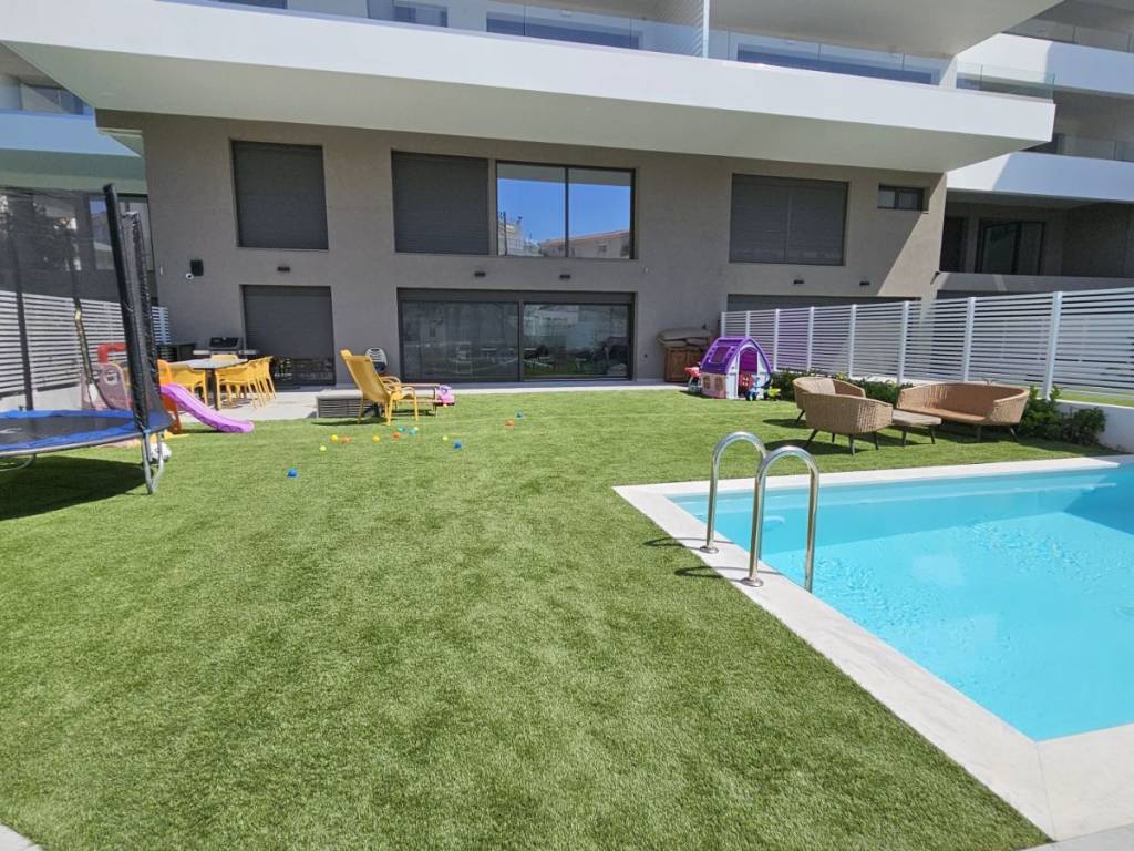 Elliniko, Luxury Maisonette For Sale, 142 sq m. with garden and swimming pool. It is developed on two levels (Ground floor and 1st floor), offering a living-dining room, three spacious bedrooms, including a large master room, two modern bathrooms and a WC. Year of construction: 2022. It has 3 parking spaces with the possibility of charging electric cars and a large basement storage room. The maisonette has exclusive use of a 214 sq m garden, an 18 sq m swimming pool, an electric garden awning and a separate garden-main street door. The kitchen of the house is modern and equipped with all the electrical appliances you need to create culinary masterpieces. The floor is made of wood, tiles and marble, offering an elegant feel to all areas. All areas have soundproofing and thermal insulation, offering the best quality of life. The heating is autonomous, a heat pump with underfloor heating has been installed. Do not worry about the summer heat, as there is air conditioning to keep the atmosphere cool. For your energy comfort, the residence has been classified with the A+ energy certificate! Certified high-class concrete was used for the construction, 8-10 cm external thermal insulation, ALUMIL thermally-broken frames with Low-e glass, Hidden ceiling fan-coils for cooling, Semi-solid oak floors, Uniquely designed and curated kitchen by Theodoridis, High-resistance lacquered wardrobes and sliding doors, Top choice of LG air conditioning & heating system with heat pump, High-quality ceramic and porcelain tiles for cladding (indoor and outdoor areas), Built-in shower set with detachable head, Modern audiovisual & internet installations and Pre-installation of an alarm network. Features: Newly built, Luxurious, Frontage, Elevator, Security door, Alarm, CCTV, Satellite Antenna, Cable TV, Internet, Internal staircase, Double glazing, Screens, Electric roller shutters, Balconies, Underfloor heating, Air conditioning, Lawn, Automatic watering, Trees, Swimming pool, Garden. The building has solar panels on the roof to produce energy that you consume in the common areas. Located in the hottest destination of the southern suburbs (400 meters from the Metro station and the under construction Vouliagmenis Mall shopping center and the Elliniko park). Distance from: Sea (m): 200O. For a 3D tour visit the Matterport-Link : http://****.**/?m=vjBYnSXB7fX