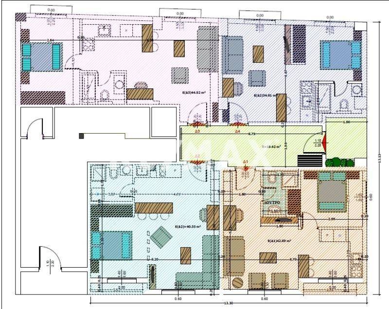Στο ισόγειο, θα βρείτε 182 τ.μ. με ανεξάρτητη είσοδο, αποτελούμενο από 4 ανακαινισμένα επιπλωμένα διαμερίσματα με ξεχωριστά ΚΑΕΚ.